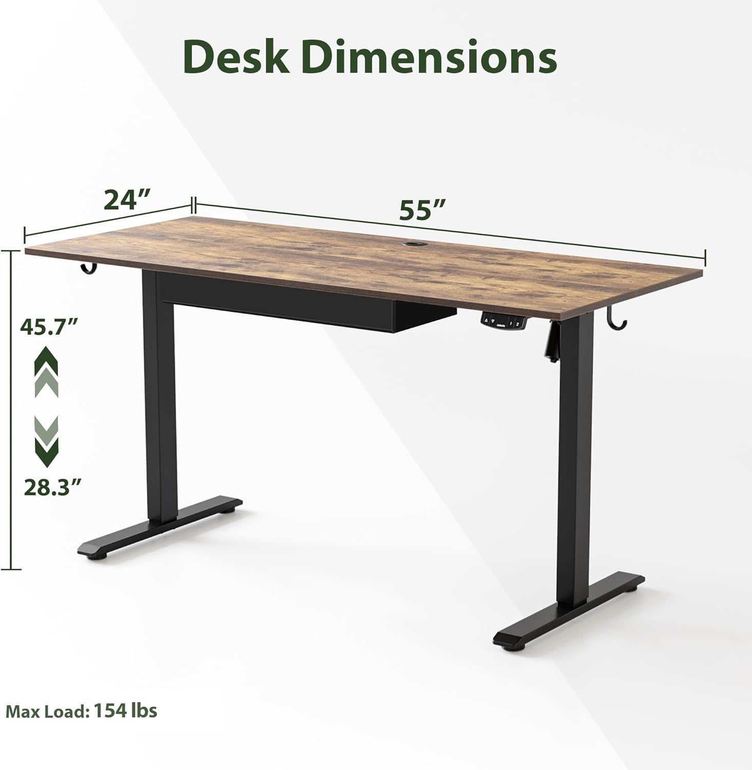 【Sturdy Frame and Durable Motor】Industrial grade steel frame and T-shaped frame design ensures that this sit-stand desk holds a maximum weight of 154 lbs. Paired with a motor that has passed 50,000 international lift tests ensures that the table will operate reliably for a long period.