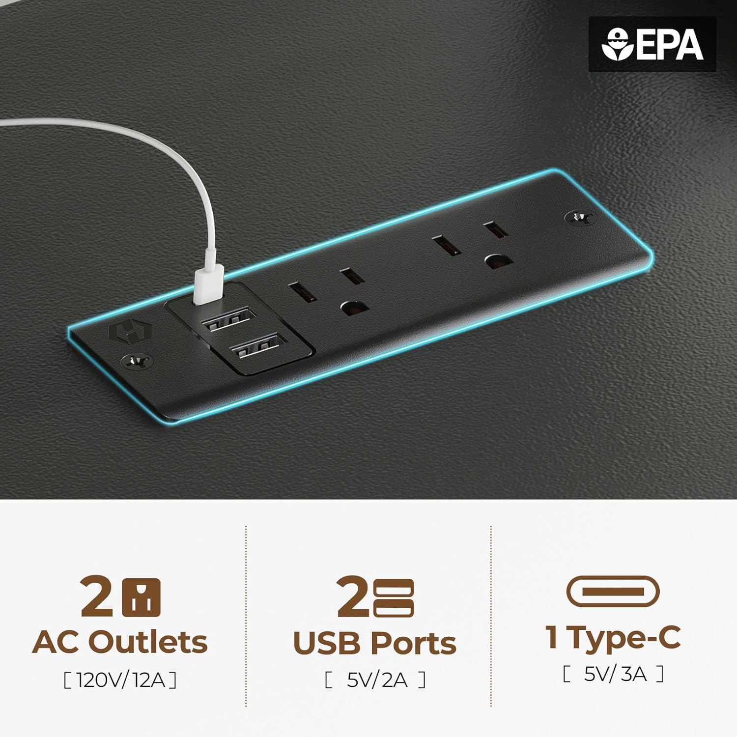 With Multiple Charging Ports: The L shaped computer desk is equipped with a versatile charging station, including 2 AC outlets, 2 USB ports, and 1 Type-C interface. This convenient setup allows you to effortlessly charge your mobile phones, tablets, and laptops, enhancing both your work efficiency and daily life