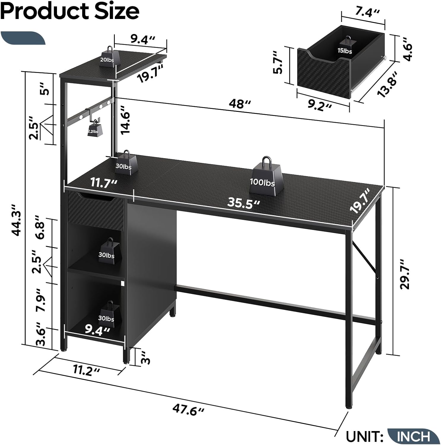【3D Carbon Fiber Gaming Desk】Bestier desktop options 3D carbon fiber texture and high-quality P2 particle board offer sturdy structure, making it easy to clean and scratch resistant, providing a reliable gaming station