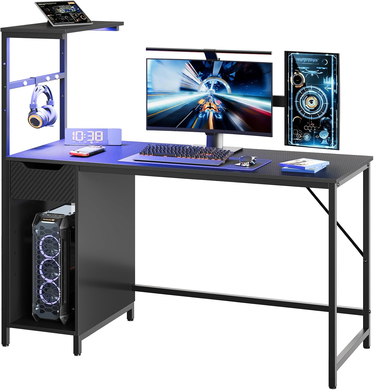 【RGB LED Lights】The Bestier led gaming desk with drawer uniquely blends style and functionality. It features built-in LED lights with 22 dynamic modes, creating a fun and exciting atmosphere, you will completely immerse yourself in your work or gaming time