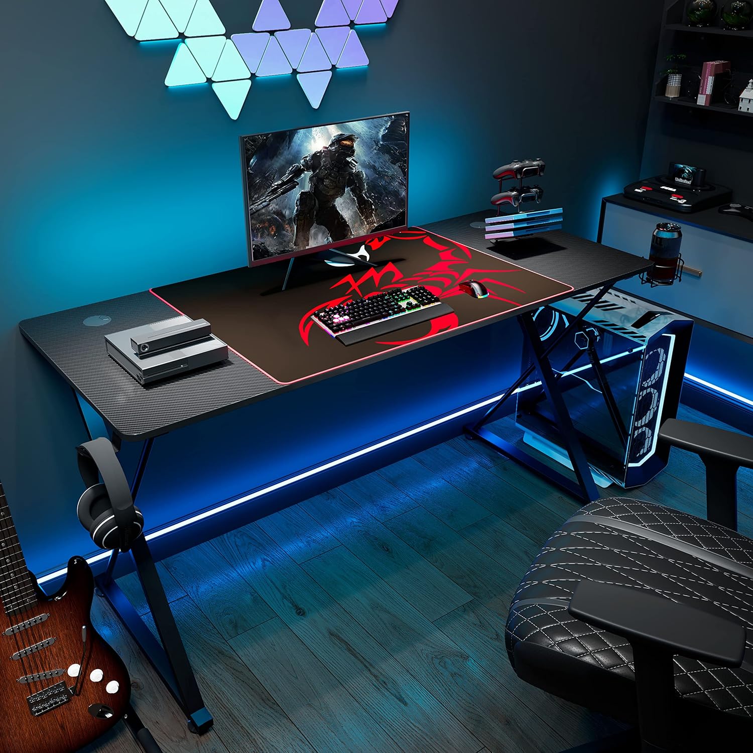 1. The X shaped support structure of Captain X Series 55” gaming computer desk comes with a combination of the line of gentle and the sturdy hourglass-inspired design.