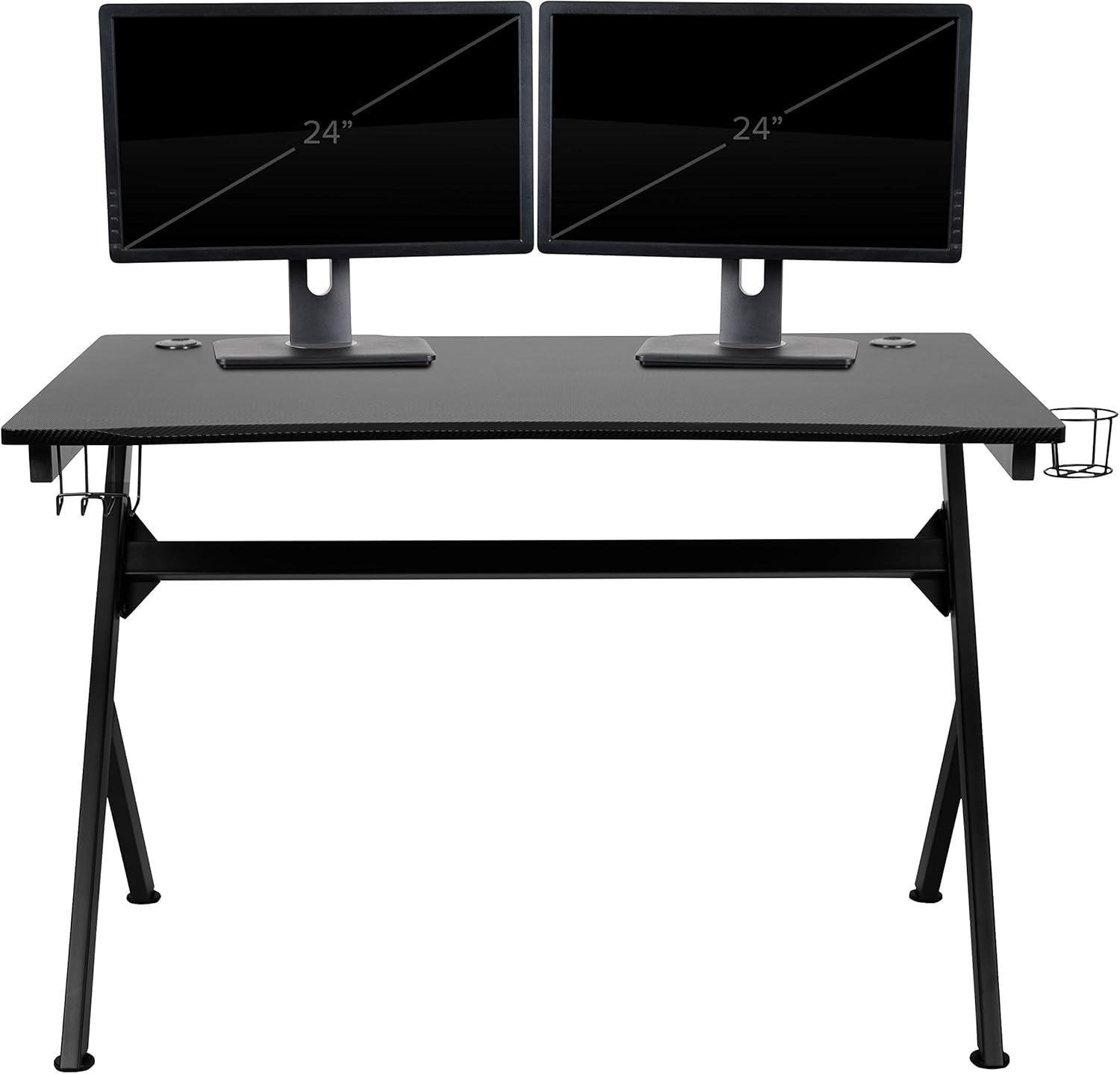 INTELLIGENT DESIGN: carbon fiber top prevents rust and corrosion and extends the life of the desktop, includes a cup holder, headphone hook and has 2 wire management holes to keep you organized