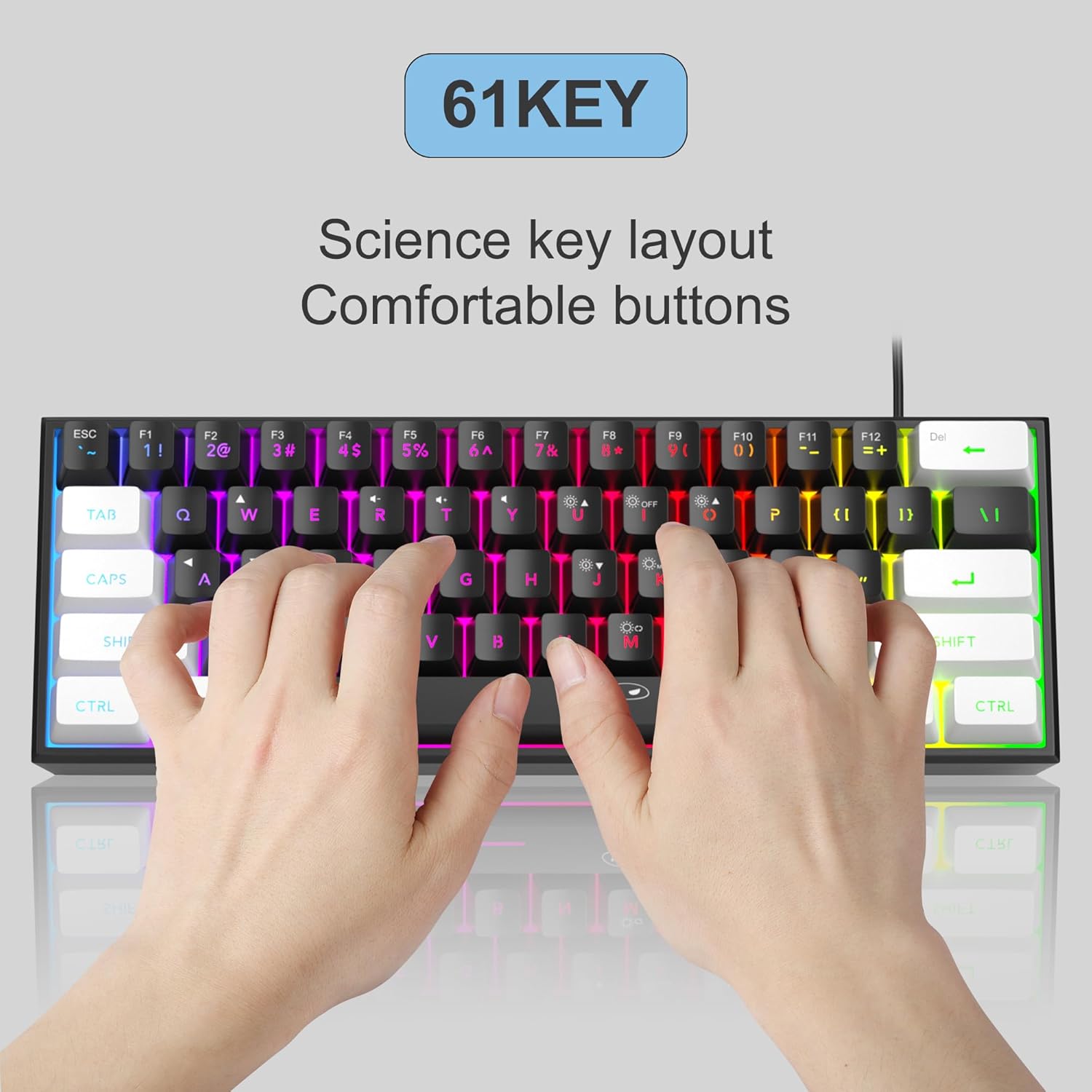 ✅【Classic 60% Compact Layout Keyboard】This 60% gaming keyboard has a perfect size and it’s good for Home and Office use, without Numpad, more practical for Gamers and Typist, give more space to your desktop.