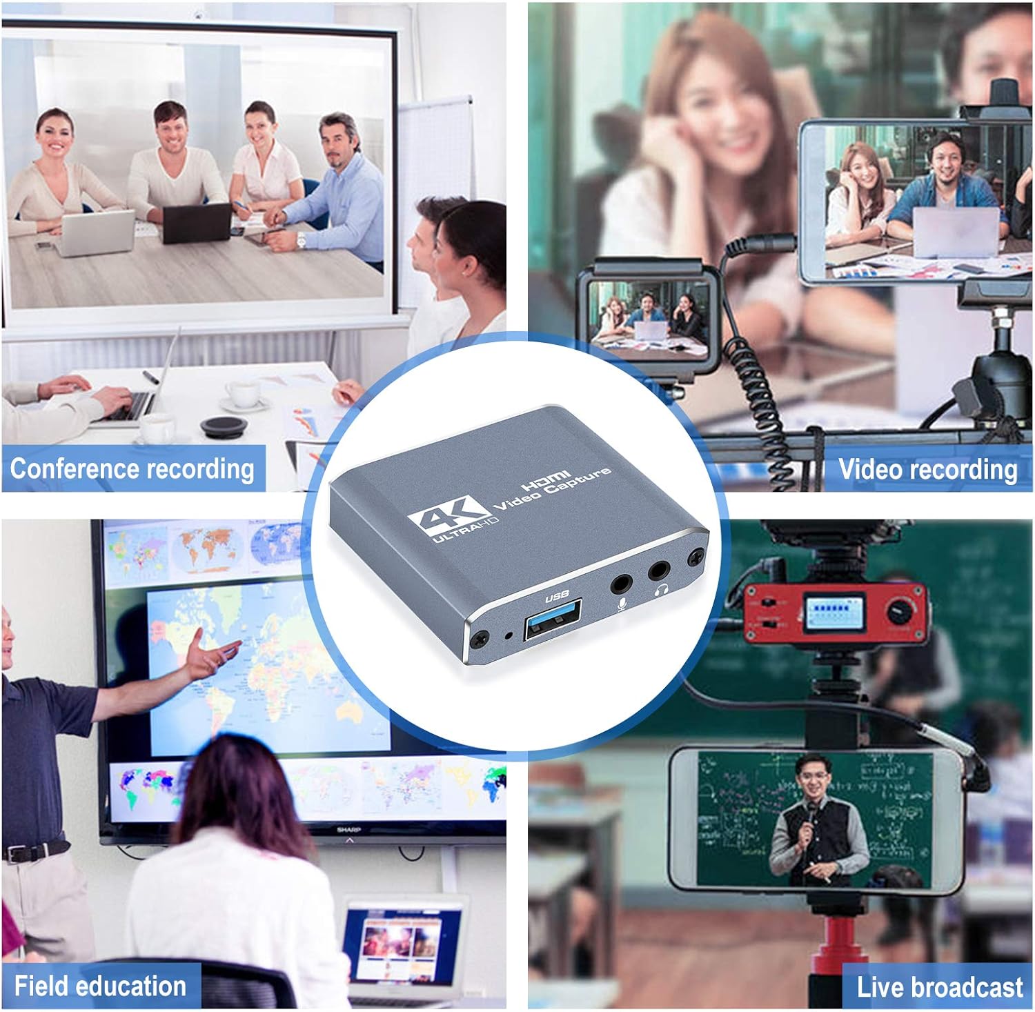 3.5mm Microphone Input & Audio Output – With additional microphone audio input, this 4K HDMI capture card allows game lovers to stream voice, record voice and add your own voice into the gameplay in time, mixing line audio and mic audio to gaming smoothly. You can also connect the audio video capture device with your earphone with 3.5mm audio out port.