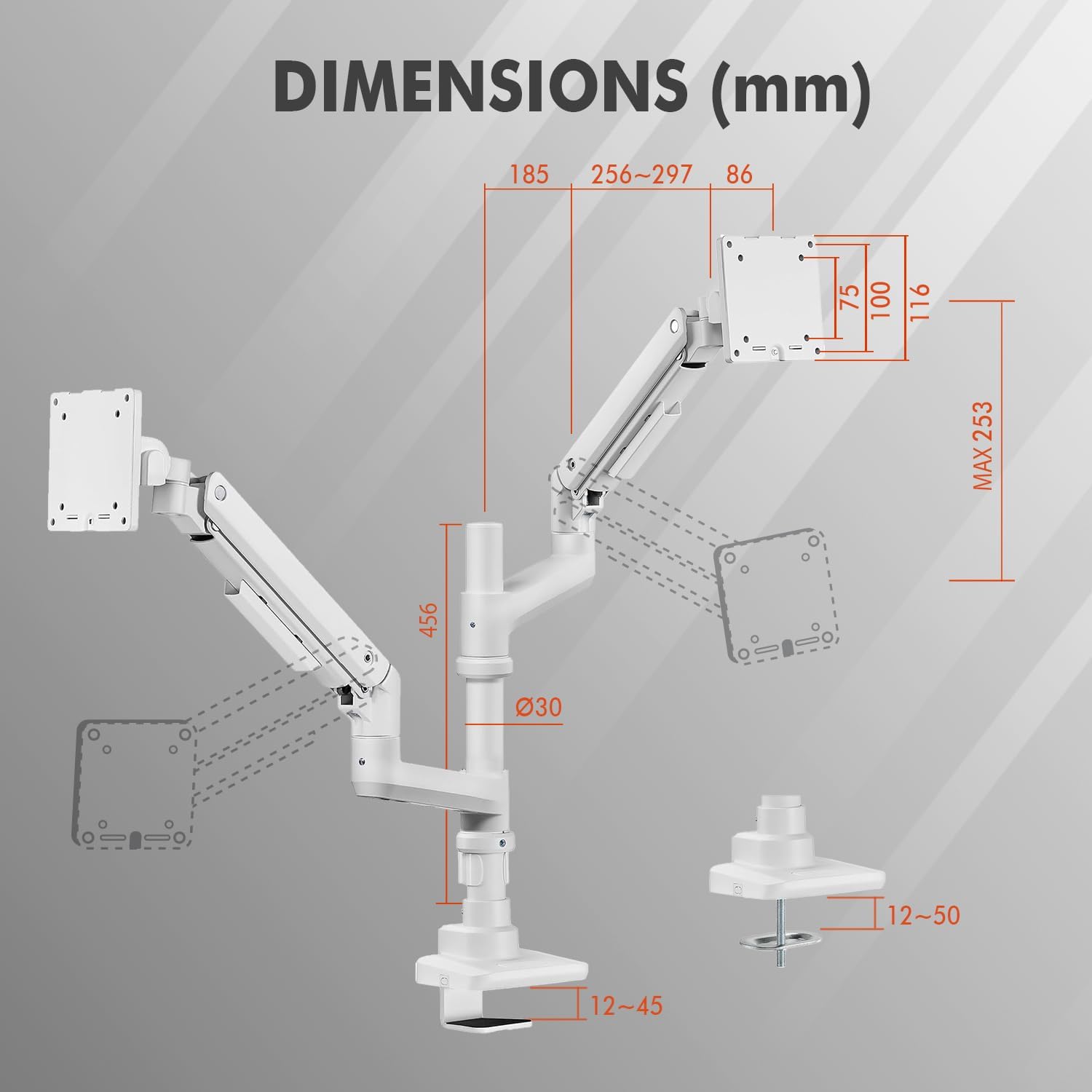 Stylish and Space-Efficient Dual Monitor Stand – Available in single and dual arm options, in both black and white. This mount is perfect for enhancing any computer setup, from gaming to professional workstations.