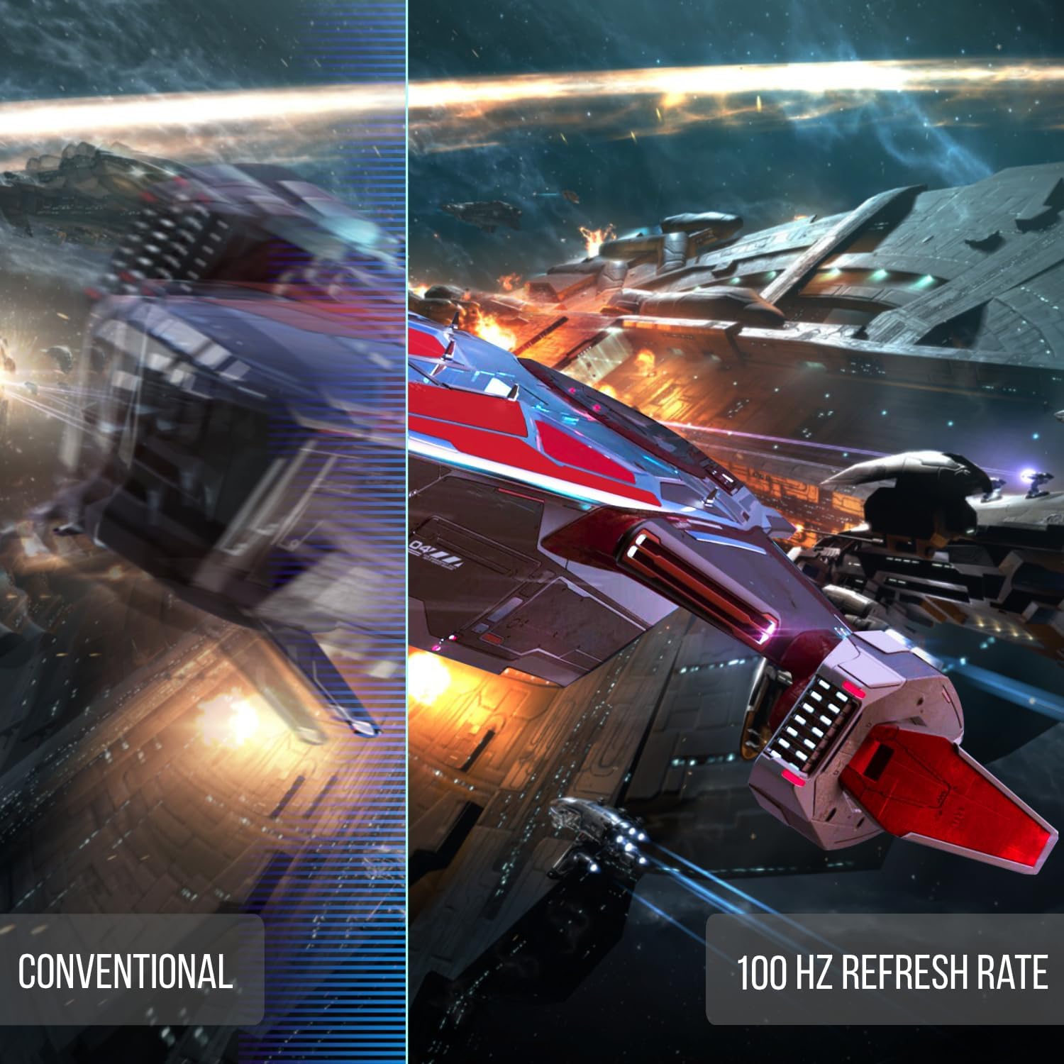 100Hz refresh rate with 100Hz refresh rate, images transition rapidly and smoothly while still outpacing the standard and reducing screen tearing.