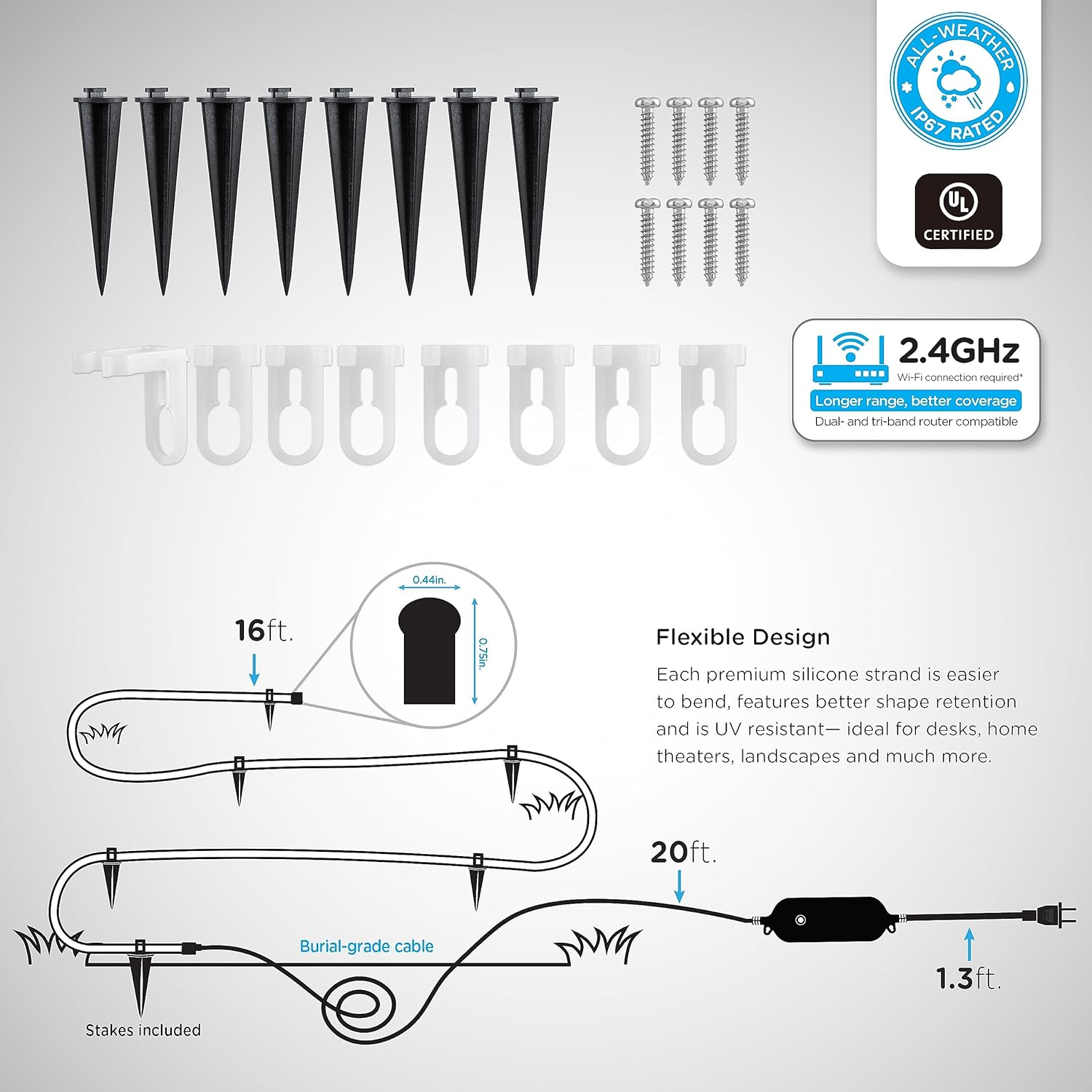 Flexible Design – The thin profile can easily be shaped around corners or laid in a line – perfect for gaming and streaming setups, home theaters, landscapes, walkways and more (hardware included)