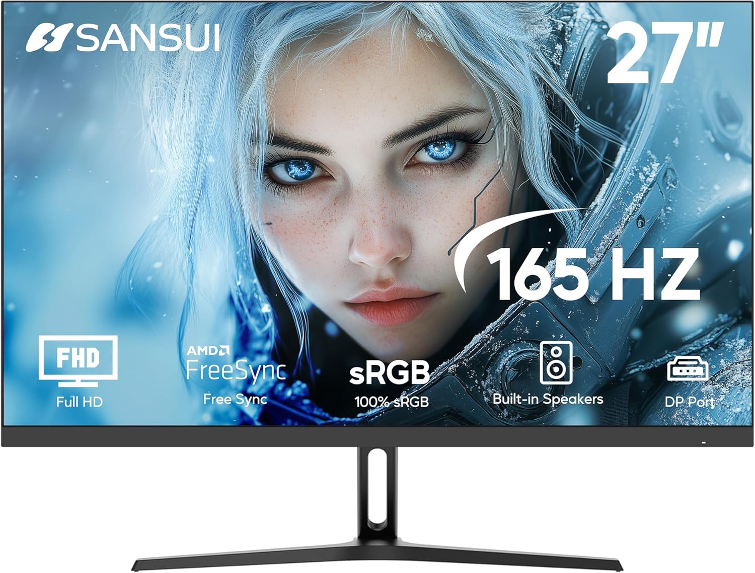 Smooth Gaming Experience: The SANSUI 27-inch gaming monitor features a rapid 1ms response time and a 165Hz refresh rate, along with Adaptive Sync technology, ensuring ultra-smooth motion. With specialized FPS and RTS modes, it eliminates screen tearing, stuttering, and input lag, providing an exceptional gaming experience.
