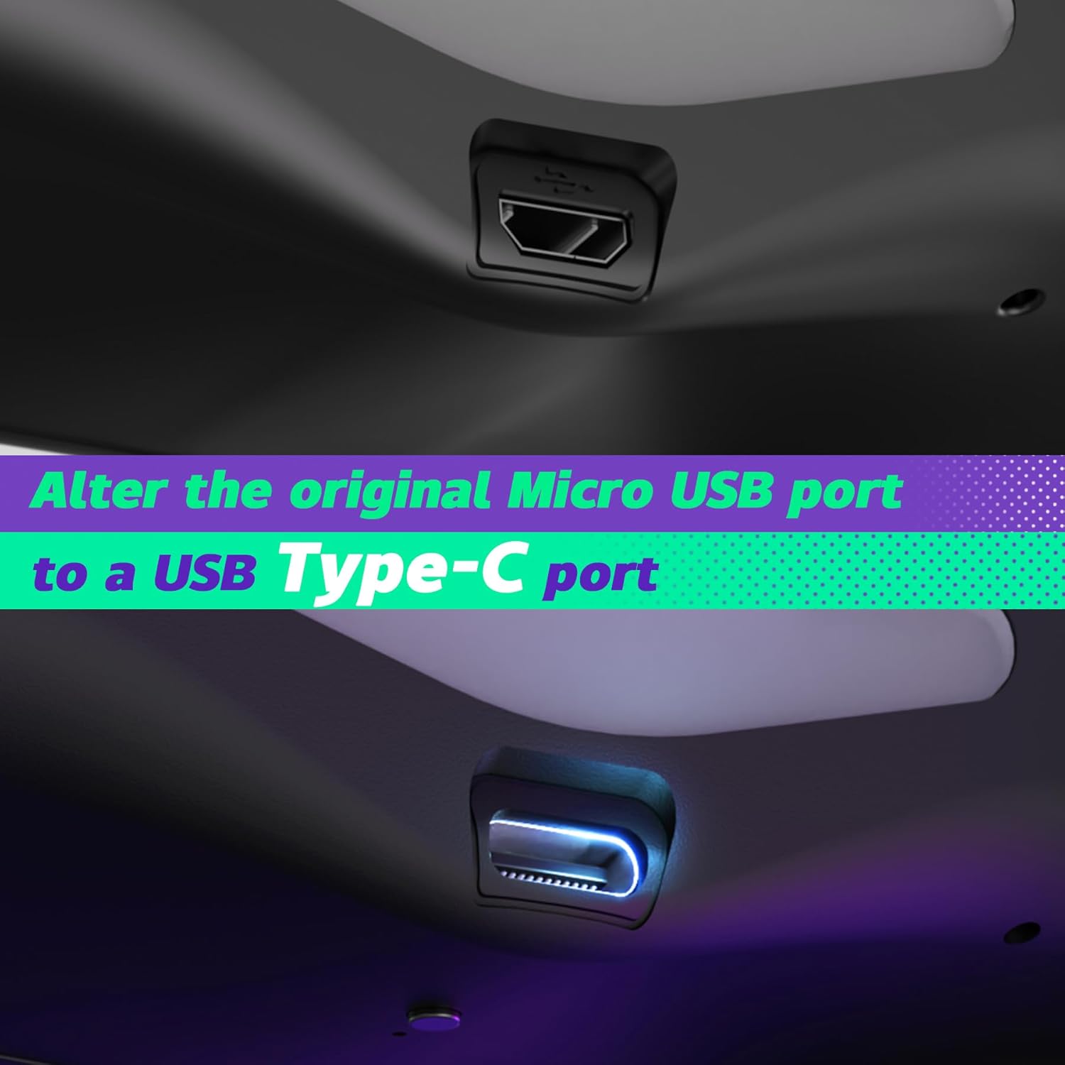 Custom Dawn Type-C version remap kit with the main PCB and back shell buttons are specially designed for PS4 Slim Pro controller, which can turn the controller’s Micro USB charging port into a Type-C port, making it more convenient and practical for charging