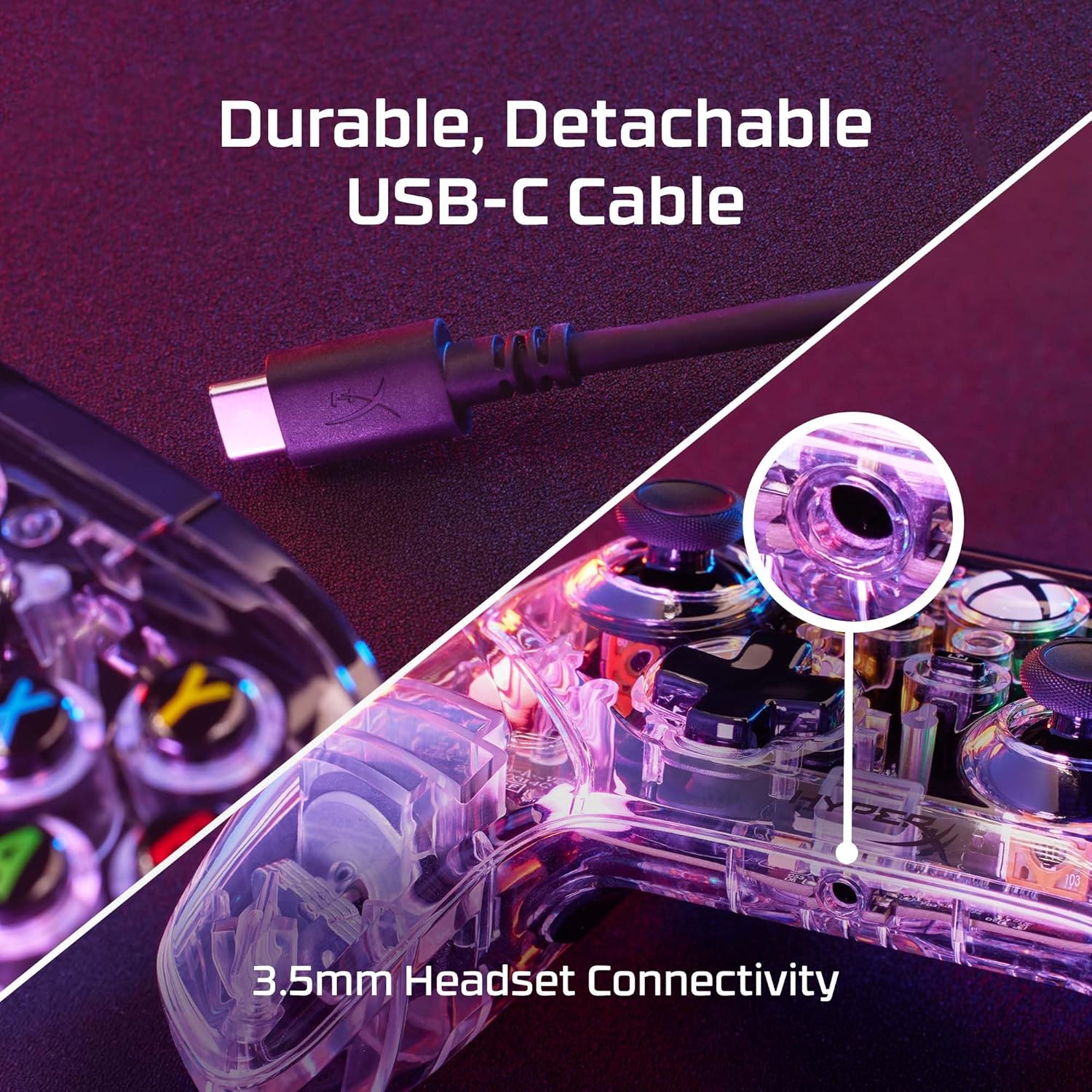 The HyperX Clutch Gladiate RGB Gaming Controller is built for Xbox players that want a premium controller that can provide precision and customizable controls you can optimize for your playstyle. This officially licensed wired Xbox controller features dual trigger locks and remappable rear buttons so you can take control of the game your way. Powerful dual rumble motors and impulse triggers take immersion and force feedback cues to a whole other level. Showcase your style with the Clutch Gladiate RGB’s full-body lighting, 3 different effects and 7 different colors of customization, no software required. It also features a 3.5mm stereo jack so you can easily connect your favorite wired headset, and a USB-C to USB-A connector so you can plug it directly into XBOX Series X|S consoles.
