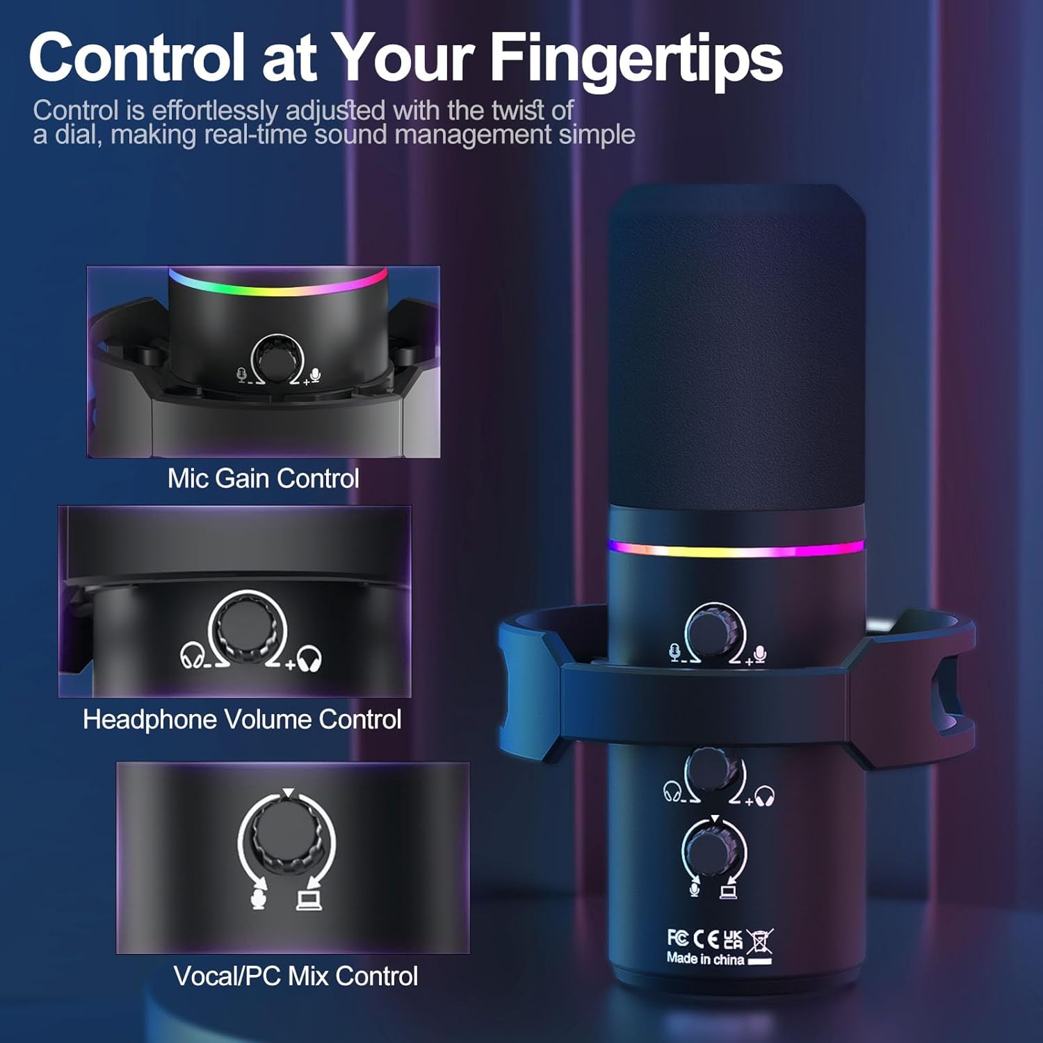 Vibrant RGB Lighting: Enhance your gaming setup with dynamic RGB lighting options. Choose from five static colors or a dynamic multi-color gradient mode to create an atmosphere that matches your mood during gameplay or podcasting. Easily toggle the lights on/off or switch modes with the button at the bottom, adding a visually engaging element to your experience. (USB mode only)