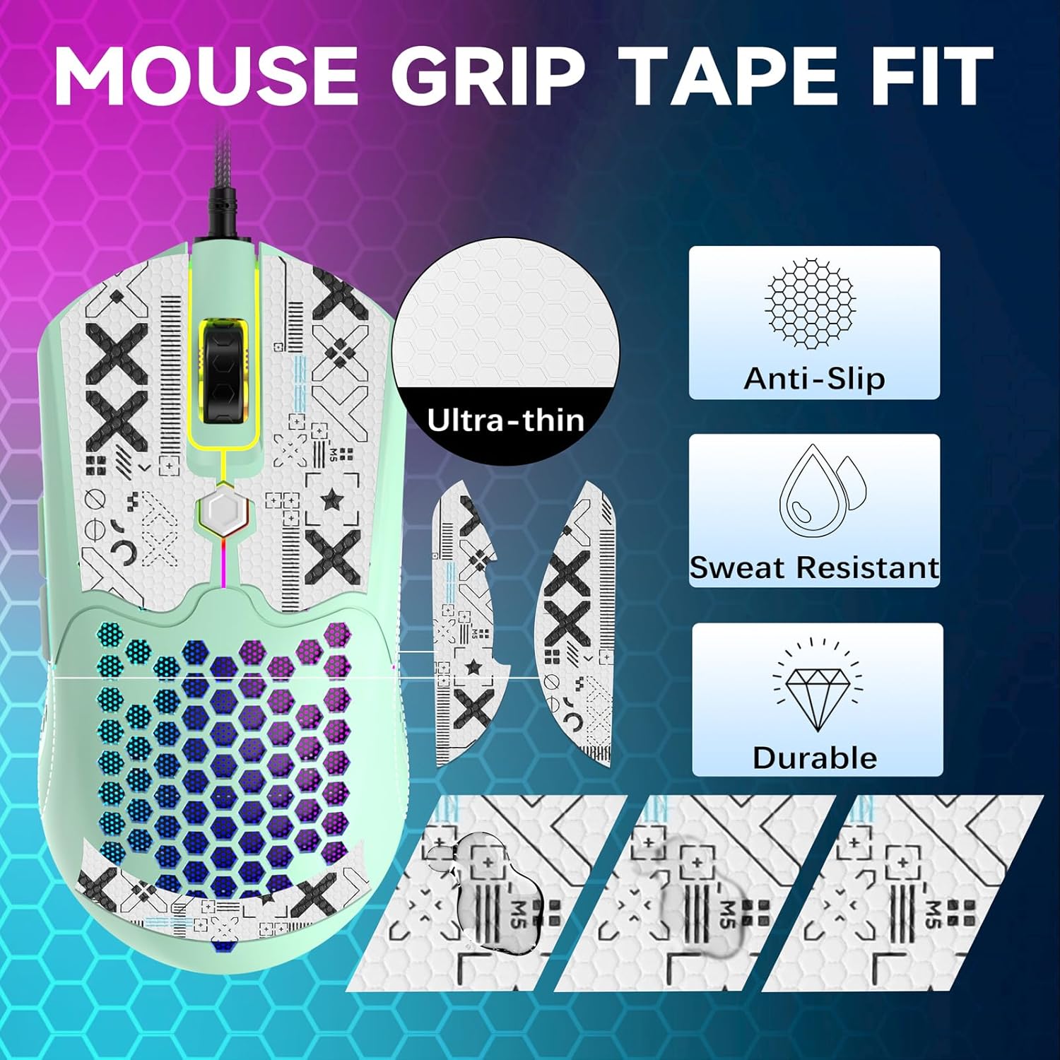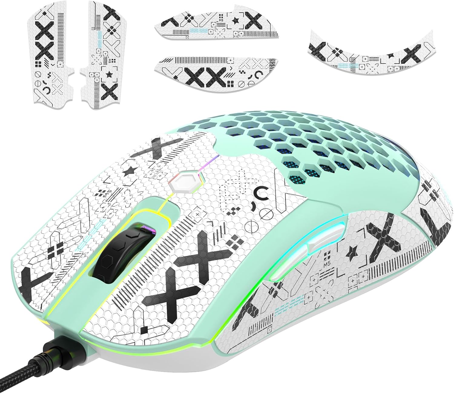 【HONEYCOMB LIGHTWEIGHT MOUSE】 Honeycomb hollow design, mouse weight is only 65g, the professional design greatly reduces the weight of the mouse, making the mouse more flexible in manipulation, and reducing hand fatigue as much as possible during longer use. Made of high-quality ABS material, environmentally friendly, non-toxic, and will not produce any harmful substances