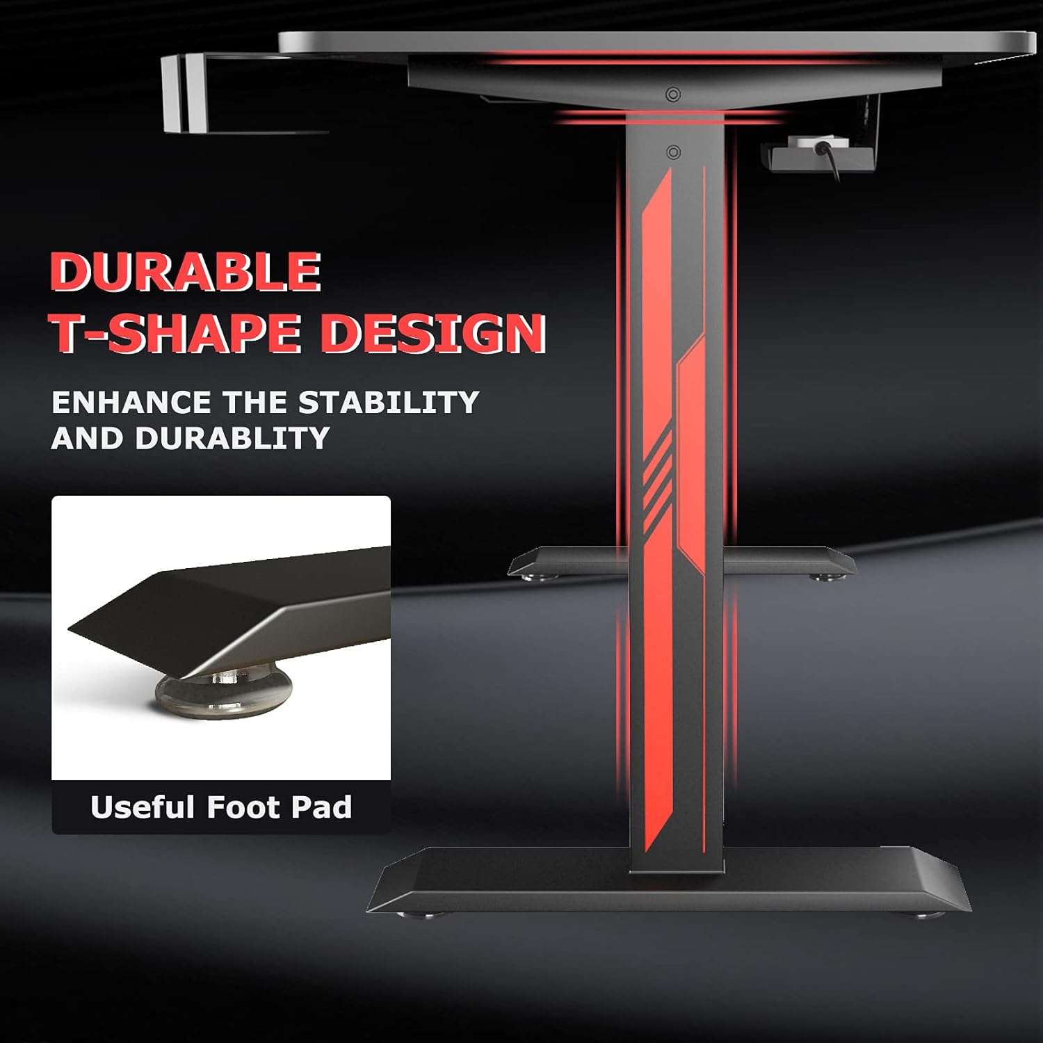 š®ćGaming Desk With Strong Frameć Game desk with all metal T-shaped legs and real steel frame structure supports up to 260 pounds, brings a better experience for each gamer.