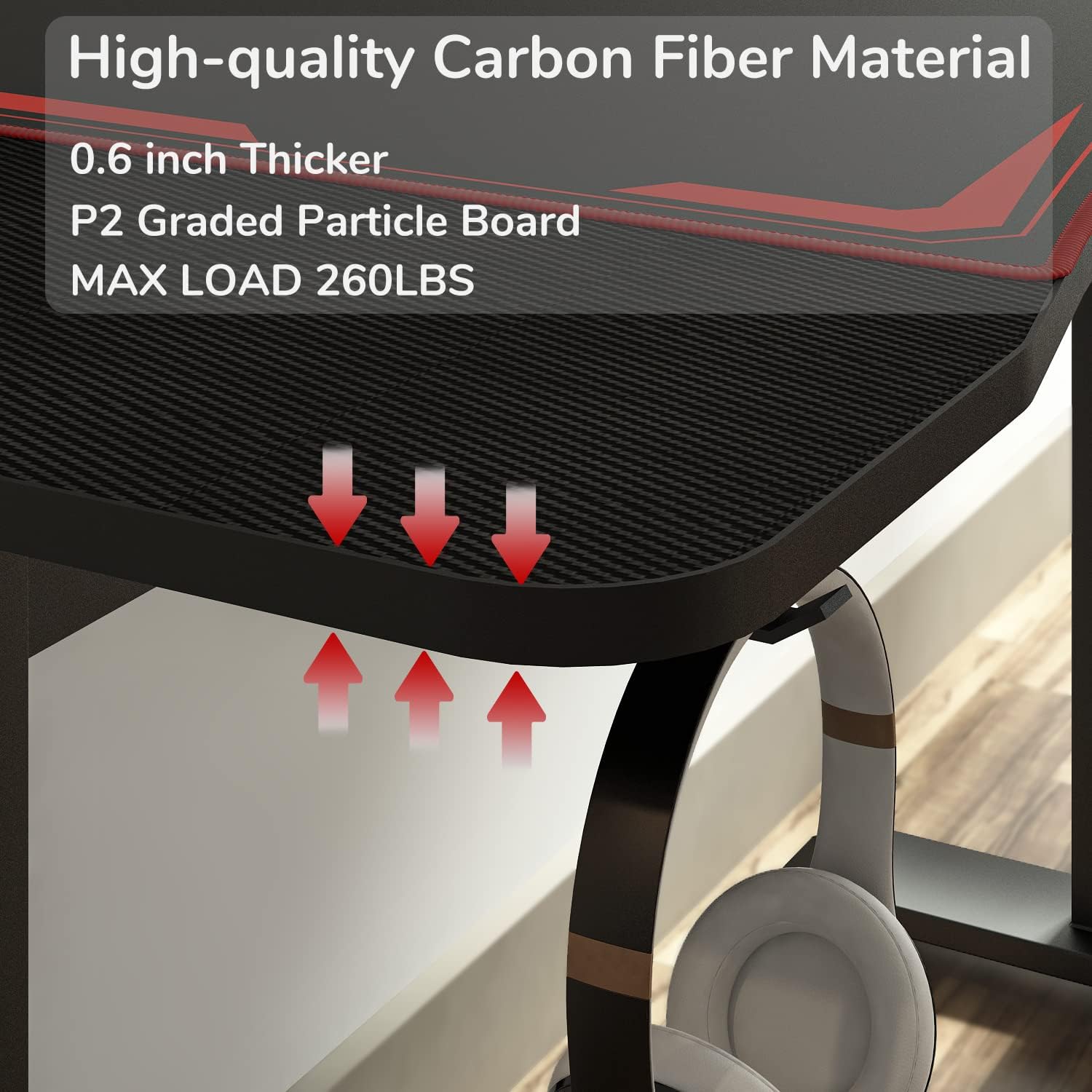 š®ćSpacious Gaming Desktopć Dimension 63″ x 23.6″ x29.5″, large carbon fiber desktop and full mouse pad provides generous place for your gaming monitors, PC, gaming keyboards and other gaming gear.