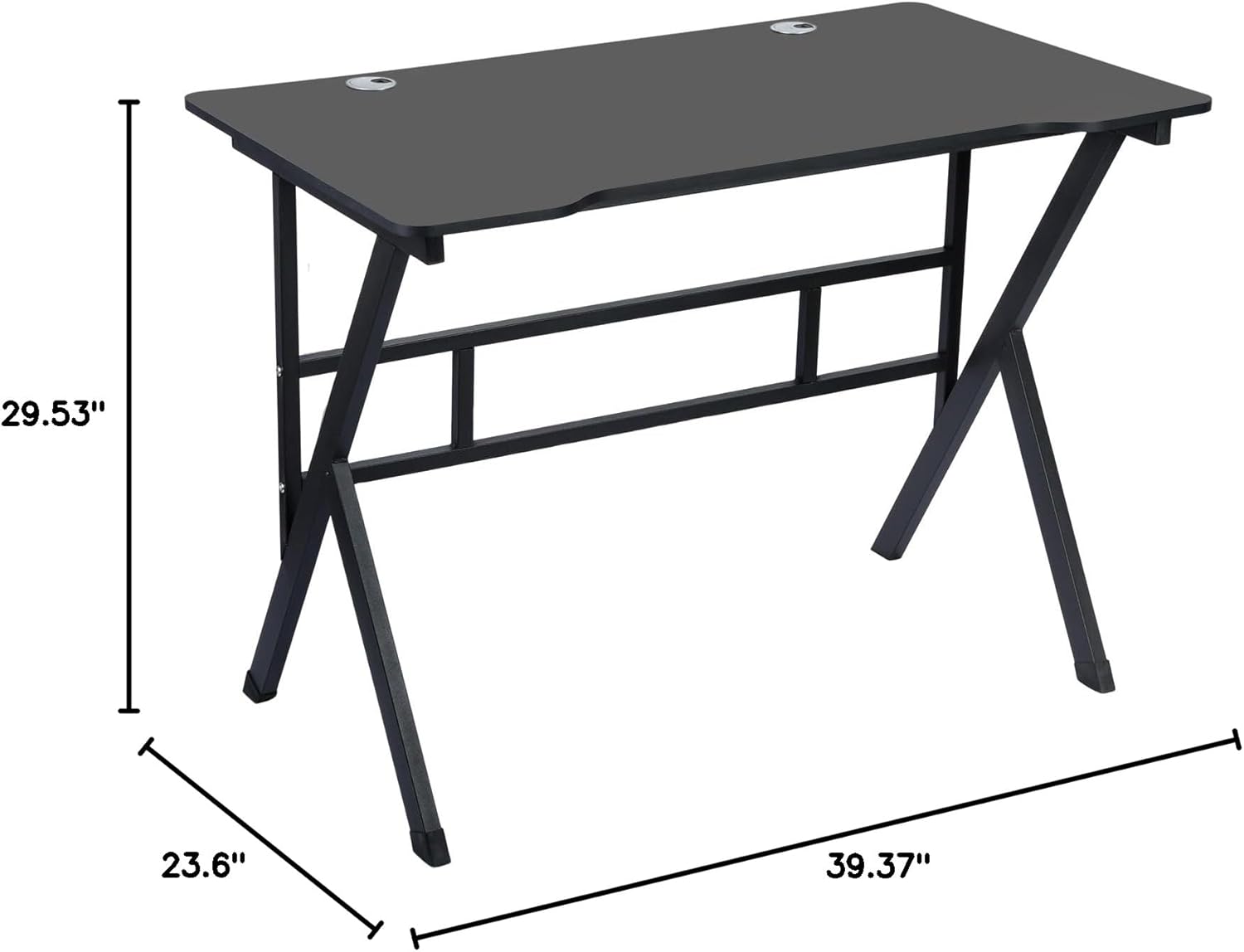 Super Cool Appearance: Plate type material of the entire table top, three-dimensional texture, a stronger visual sense, which makes the whole table full of fascinating luster and delicate touch. Ergonomic design, fit the curve, not tired of sitting for a long time, instantly evoke your enthusiasm for the game. And the cable holes design makes you play the game more fluent.