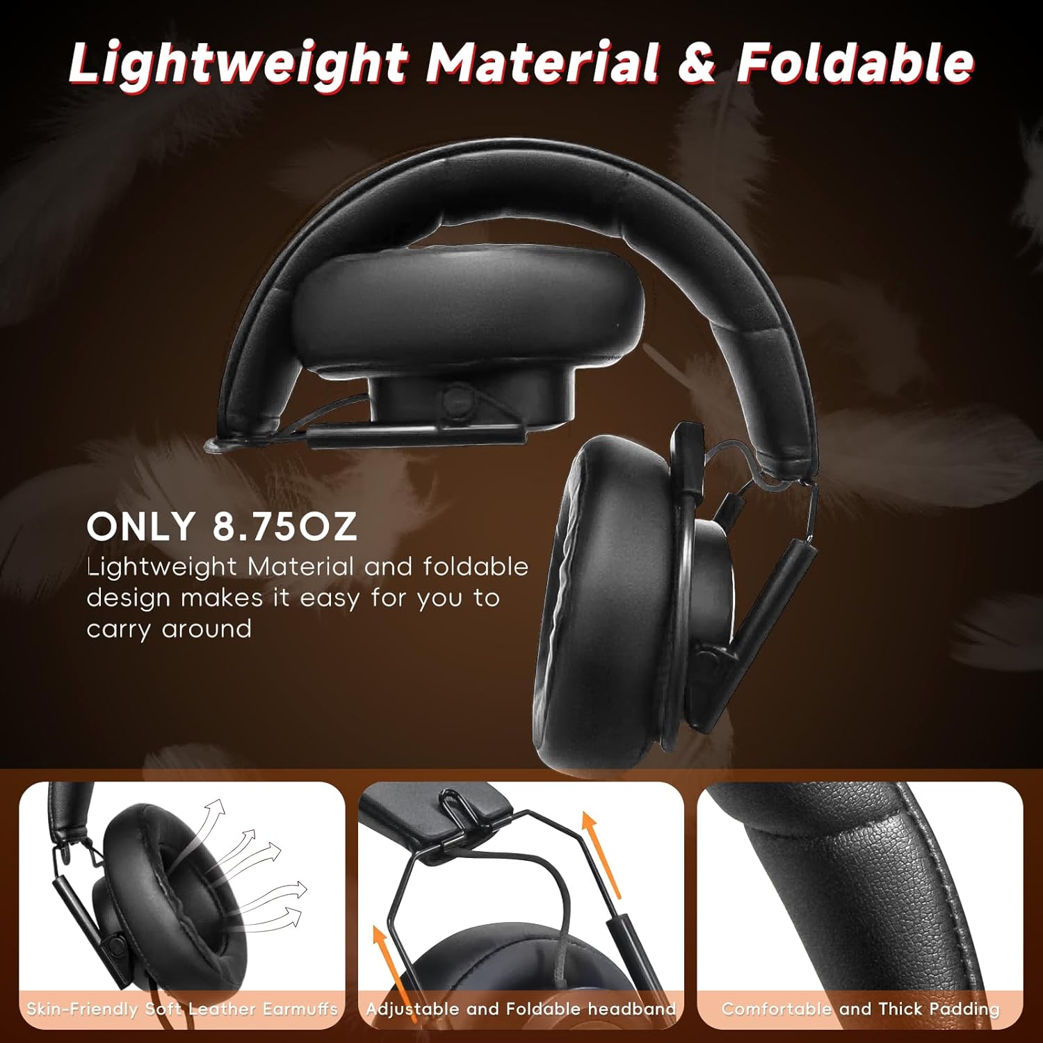 Foldable for Carring: Features flexible headphones with telescopic arms and soft ear pads. The headphones fold inside the arm, making them perfect for easy storage and travelling.