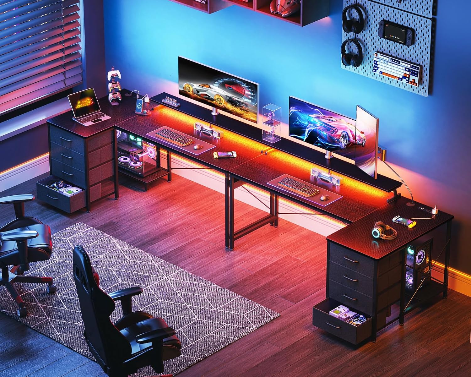 【Colorful LED Lights】 Our desk is perfect for gamers, featuring an LED strip with 10 static colors, 6 brightness levels, 10 dynamic lighting modes and a memory function with switching control. These adjustable lights allow you to reduce eyestrain, improve your focus, or make your gaming desk look the part.