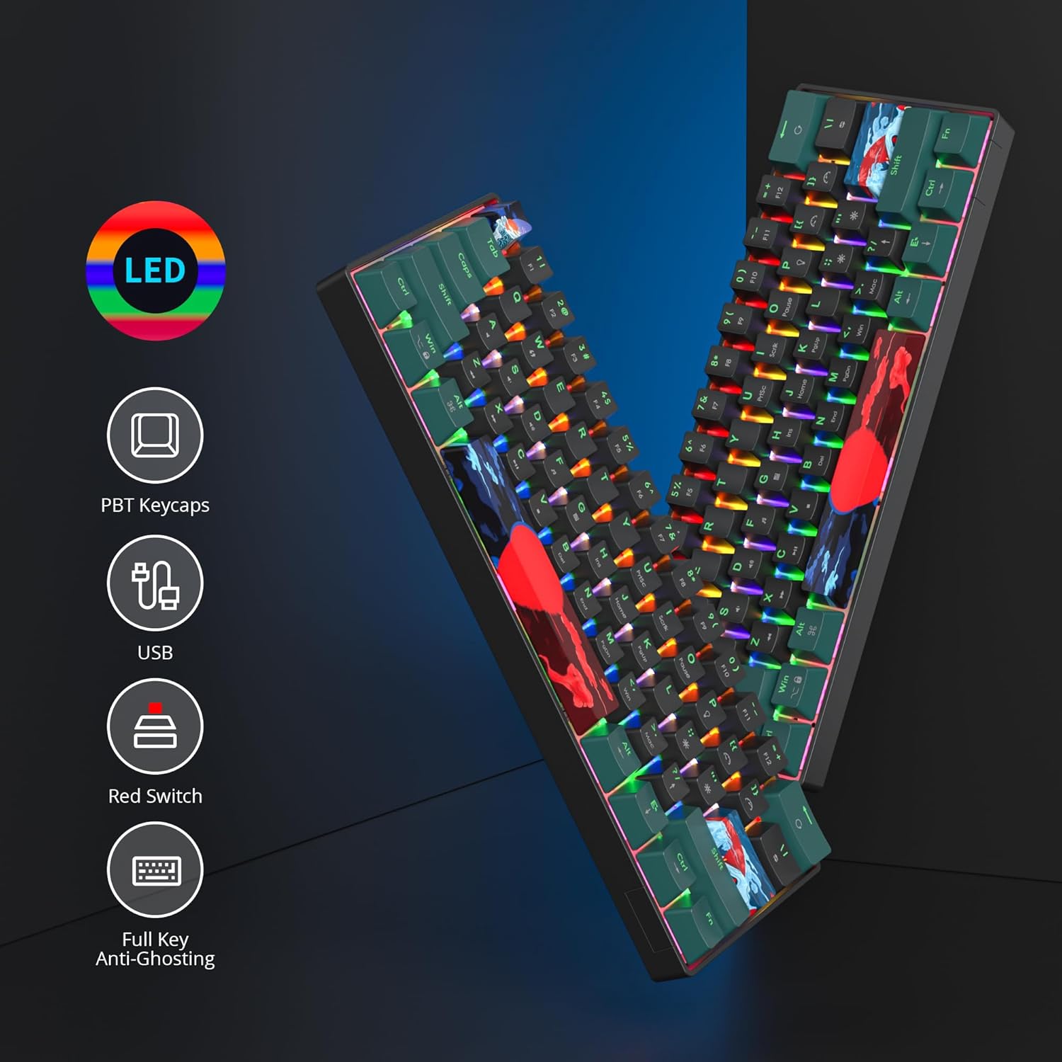 【Compact Keyboard with Ergonomic Design】: Our 61-key compact keyboard is perfect for those who want a powerful keyboard without sacrificing desk space or portability. The 60% keyboard with ABS ergonomic keycaps, you’ll experience comfort and ease of use like never before, ensuring long gaming sessions or extended typing workloads are a breeze.