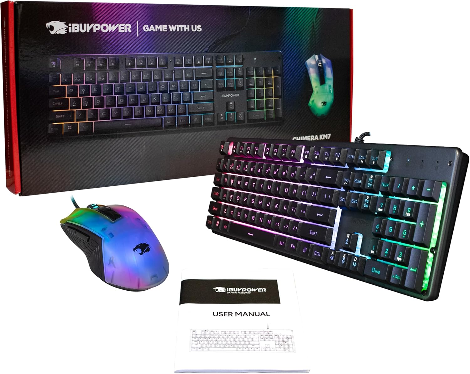 Introducing iBUYPOWER’s new generation gaming peripherals, the Chimera KM7 RGB Gaming Keyboard and Mouse Combo. The Chimera KM7 Gaming Keyboard is a 104 key membrane switch gaming keyboard with 24 RGB lighting zones. While the Chimera KM7 mouse is a palm grip ambidextrous wired mouse with an RGB diffuser. The HYTE Nexus software can be used for adjusting the perforamcne and 24 RGB lighting zone of the mouse and keyboard.