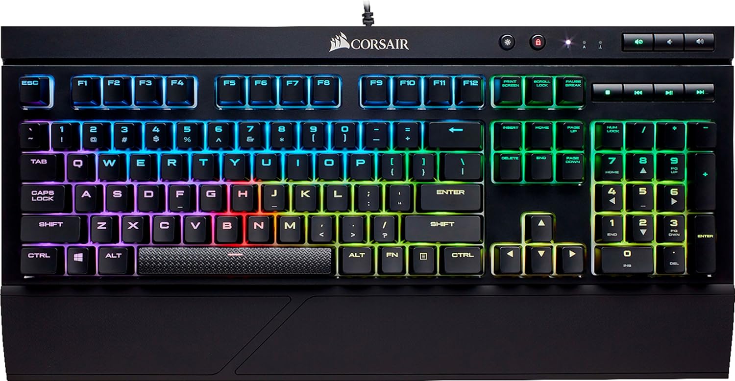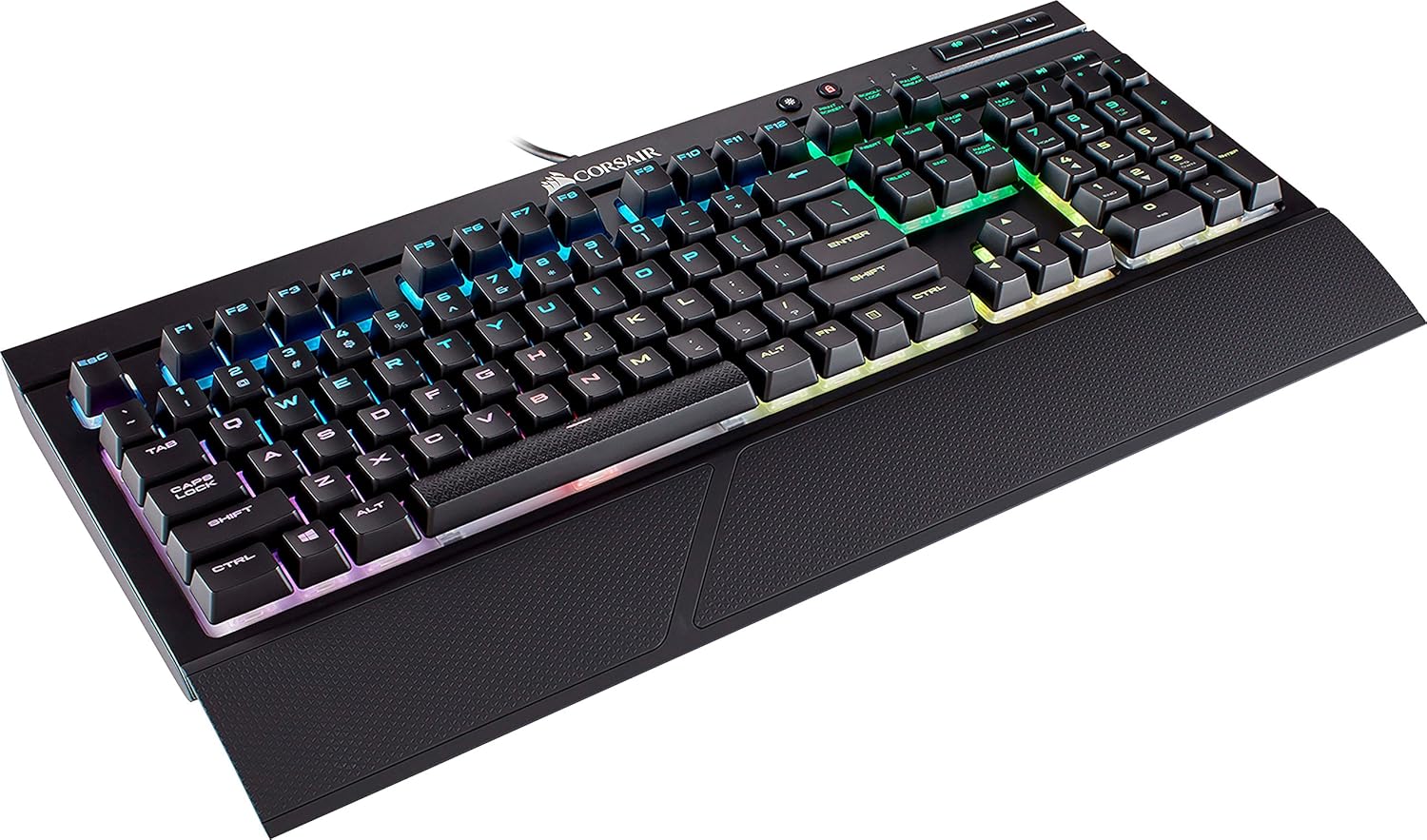 The Corsair K68 RGB ultra durable mechanical keyboard combines vivid per key RGB backlighting, up to IP32 water and dust resistance, and 100 percent Cherry MX key switches. Create stunning dynamic lighting effects and game changing macros in Corsair Utility Engine (CUE) software to match your style and give you an in game edge. Dedicated volume and multimedia controls allow you to adjust your audio without interrupting your game. A dedicated Windows Key Lock mode ensures interruption free gaming, while a removable wrist rest provides optimal comfort however you game. Whatever happens while you game, you’ll be able to play on.