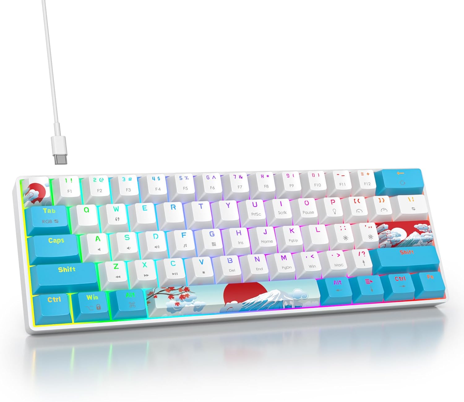 60 Percent Keyboard Mechanical RGB Backlit Wired 60% Gaming Keyboard Blue with PBT Keycaps for Windows PC Gamers (Sea/Red Switch)