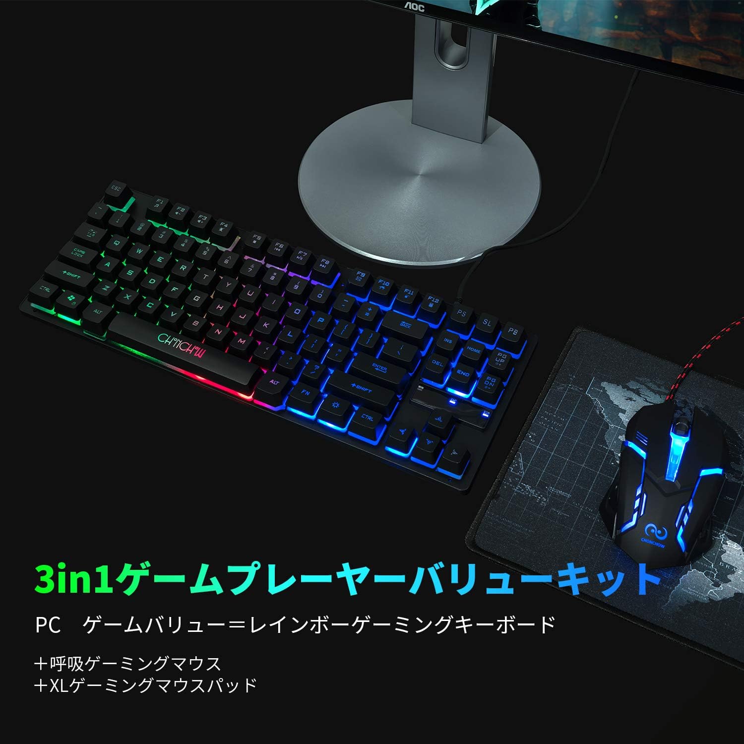 Compact 87-Key Design—-There are no additional number keys, and there is more desktop space for you to move the mouse to meet your needs in the office or at home. You will be happy with the space savings. Small gaming keyboard size: 13.5*5.5*1.2 inches