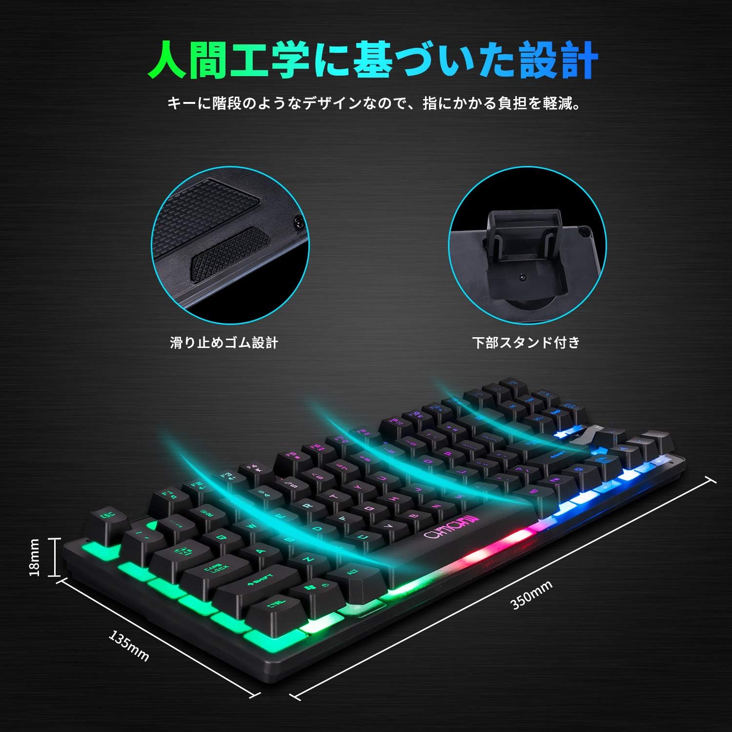 Compact 87-Key Design—-There are no additional number keys, and there is more desktop space for you to move the mouse to meet your needs in the office or at home. You will be happy with the space savings. Small gaming keyboard size: 13.5*5.5*1.2 inches