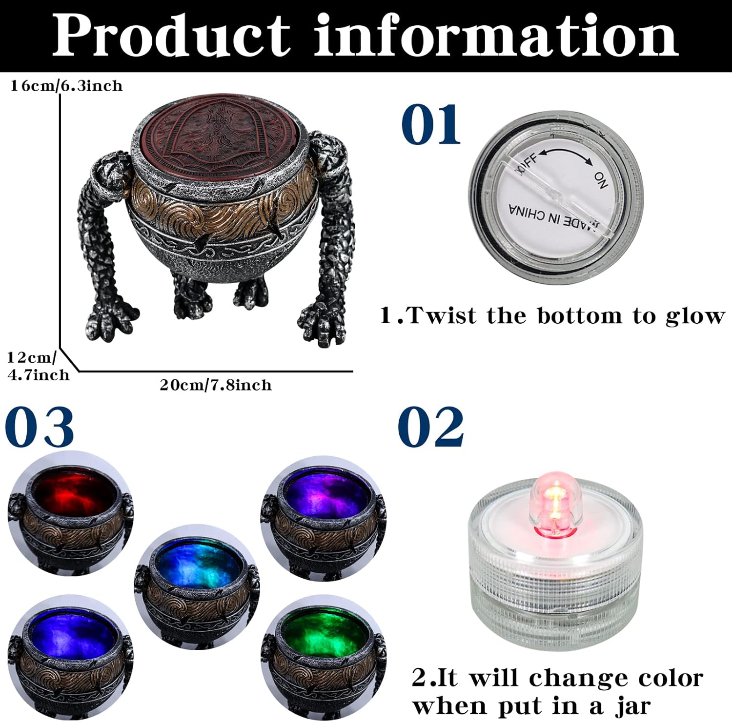 SIZE: 7.8in*4.7in*6.3in / 20cm*12cm*16cm