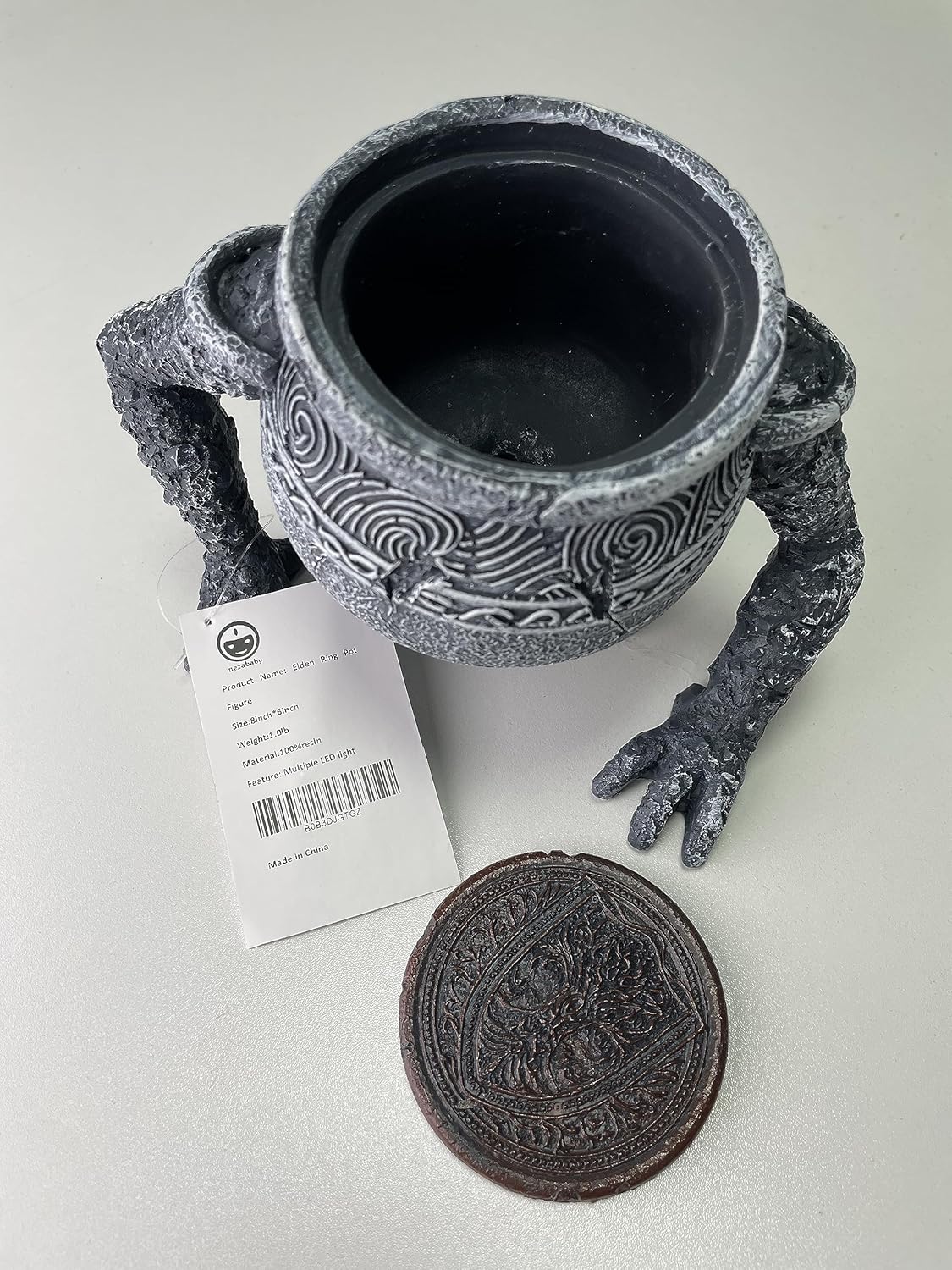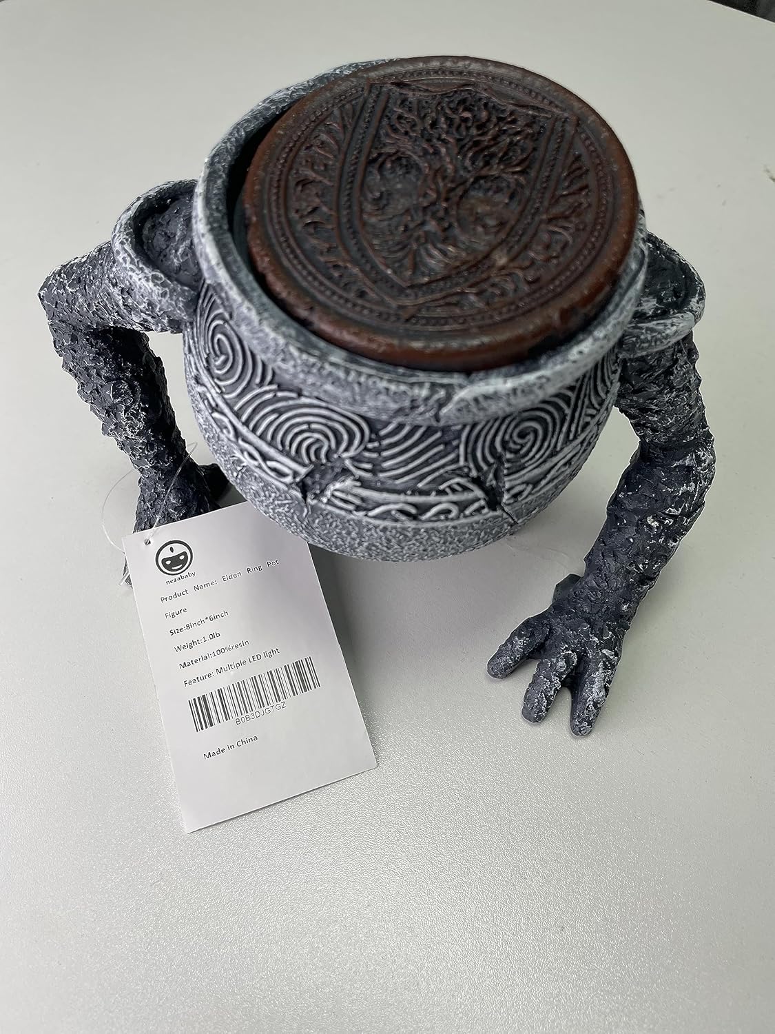 ELDEN RING POT BOY STATUES: A pot lamp with a lid, there are color-changing 5 LED lights inside, it seems to contain some kind of energy, full of vitality. The lid can be removed,you can even use it as a storage box.