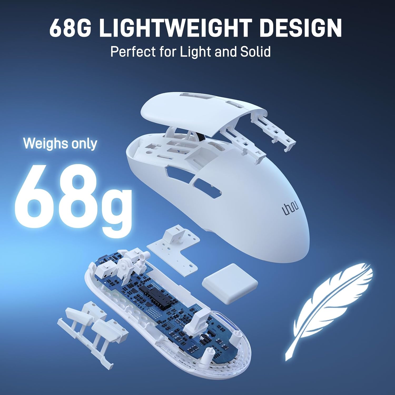 【68G/2.39OZ ULTRA LIGHTWEIGHT DESIGN】With hyperlight redesign achieving nearly 32% weight reduction compared to standard wireless mouse. UHURU WM-09 wireless gaming mouse is only 68 grams/ 2.39oz, which perfectly combines strength and grams. Making you enjoy a level of speed and control favored by the world’s top players.