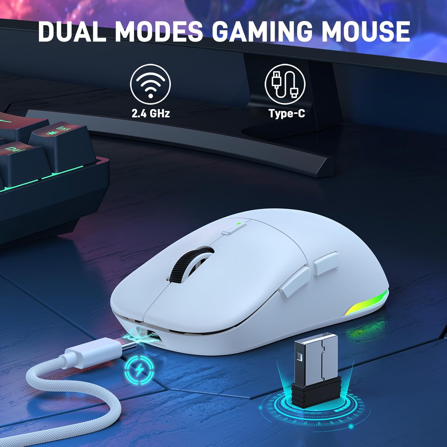 【WIRED & WIRELESS DUAL-MODE】The WM-09 lightweight wireless gaming mouse boasts a wired and wireless dual-mode, granting you the freedom to effortlessly switch between the modes according to your convenience. It is compatible with Windows, Mac OS, Chrome, Linux, and works seamlessly with PCs, laptops, computers, and other devices. No matter which operating system you’re using, this mouse will provide smooth and precise control without a hitch.