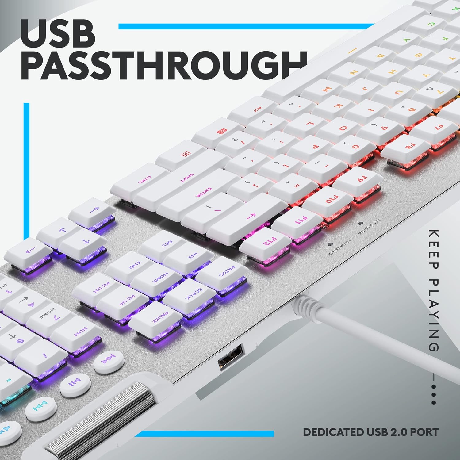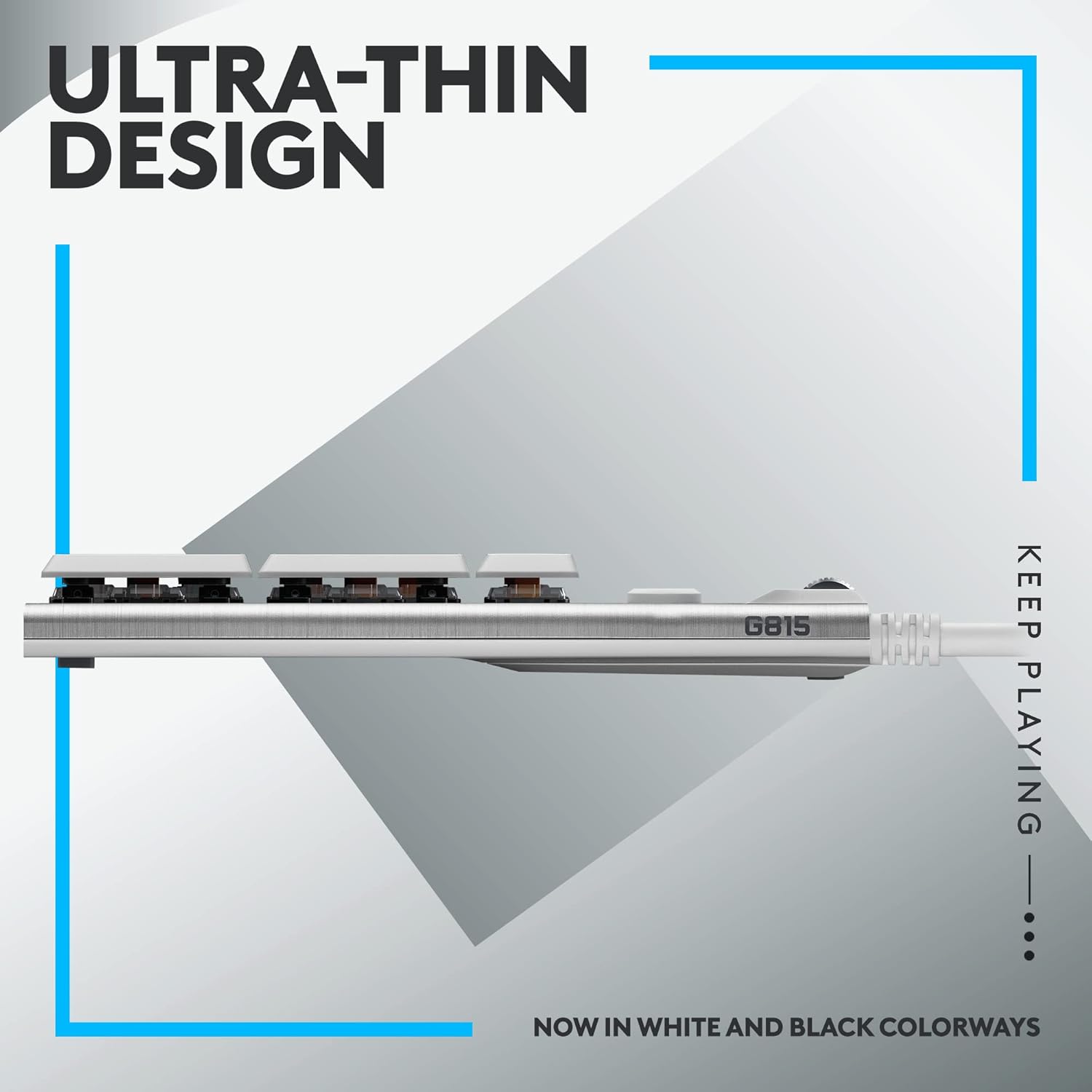 Logitech G815 LIGHTSYNC RGB Mechanical Gaming Keyboard with Low Profile GL Tactile Key Switch, 5 programmable G-Keys,USB Passthrough, Dedicated Media Control, Black and White colorways