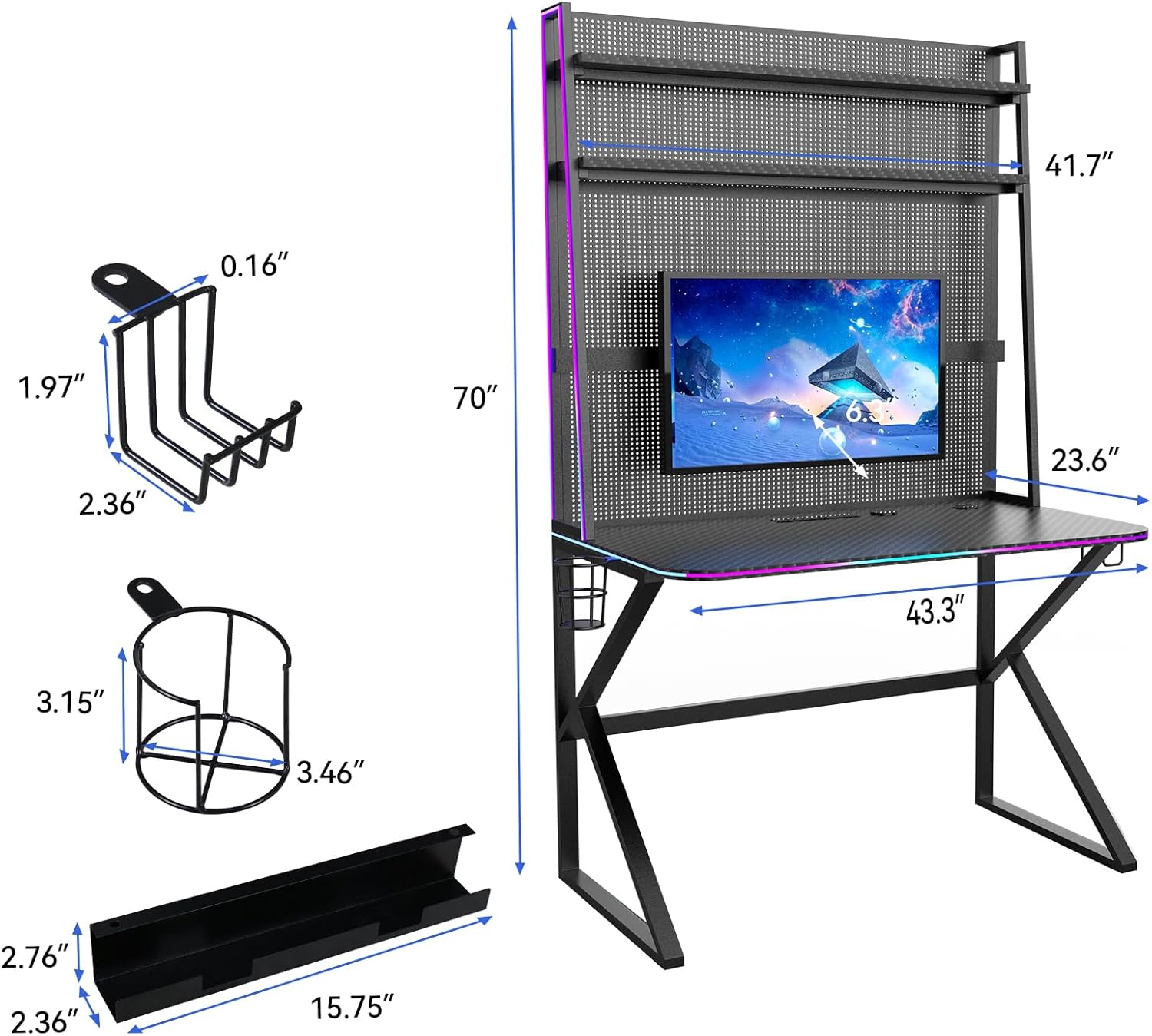 Pegboard Hutch: Customize and organize your gaming essentials using the versatile pegboard hutch. Easily mount accessories such as controllers, headsets, or other peripherals for quick access and a clutter-free workspace.