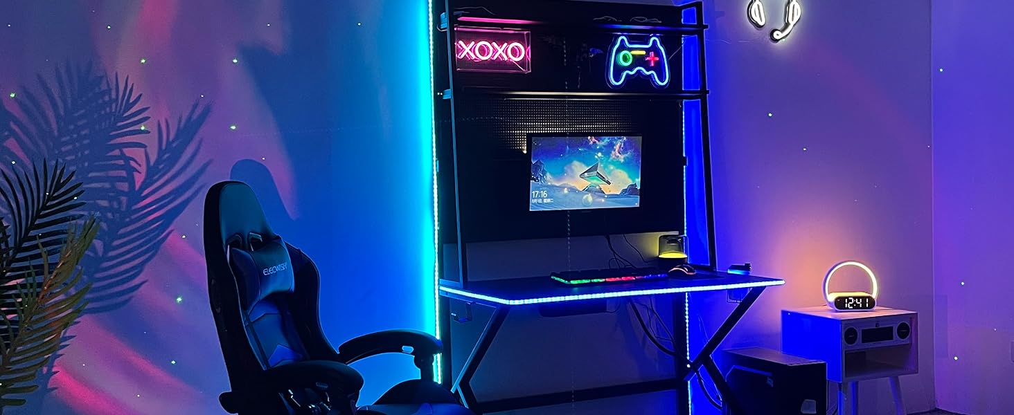 Dazzling lighting, comfortable ergonomic table and chair design for an immersive gaming experience
