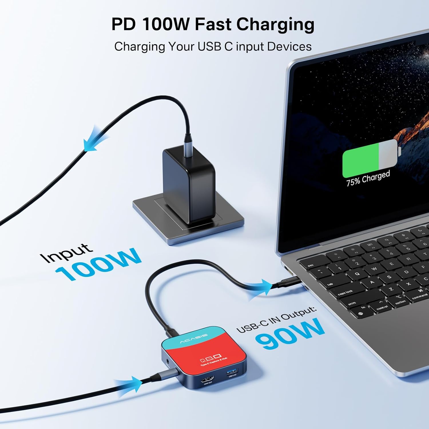 [Capture Card & Docking Station 2-in-1] ACASIS Capture Dock Features 1*USB-C IN, 1*Video Capture Card, 1*HDMI 1080P@60 Out, 2*USB-A 3.0, 1*USB-C 3.0, 1*Audio Out, and 1*PD Port. Meet the Dual Needs of Gaming/ Video Conferencing/ Real-Time Streaming Capture, and Interface Expansion while Working. Experience Unmatched Versatility with Our Powerful Capture Card and Dock! ⛔NOTE: Connect the PD100W power supply when using this capture card, and it supports NS’s original power supply.