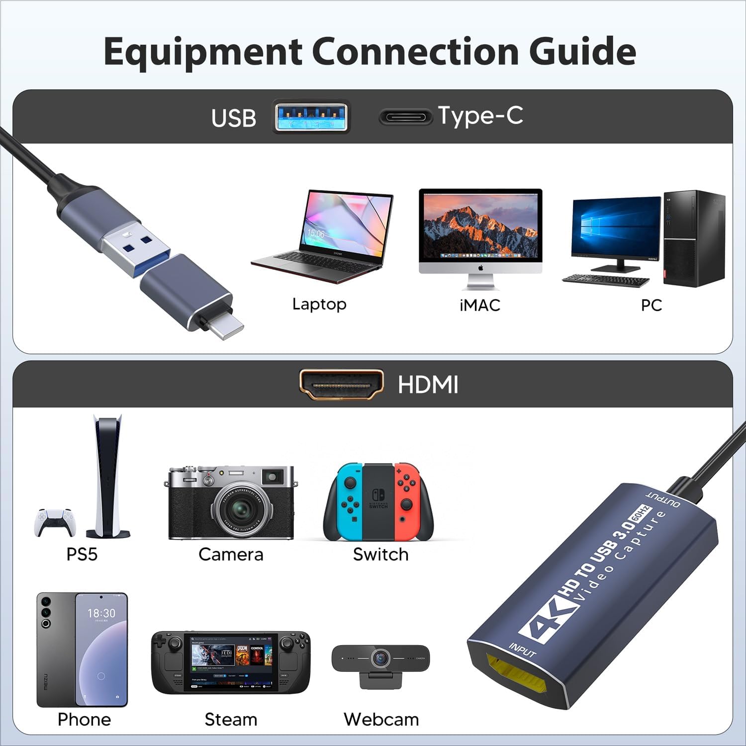 【Our Service】After purchasing, you will receive a 1xHDMI capture card with type c adapter, 1x user manual. If you are not satisfied with our product, you can refund and return it on the platform, or contact us directly. We will do our best to give you a satisfactory answer