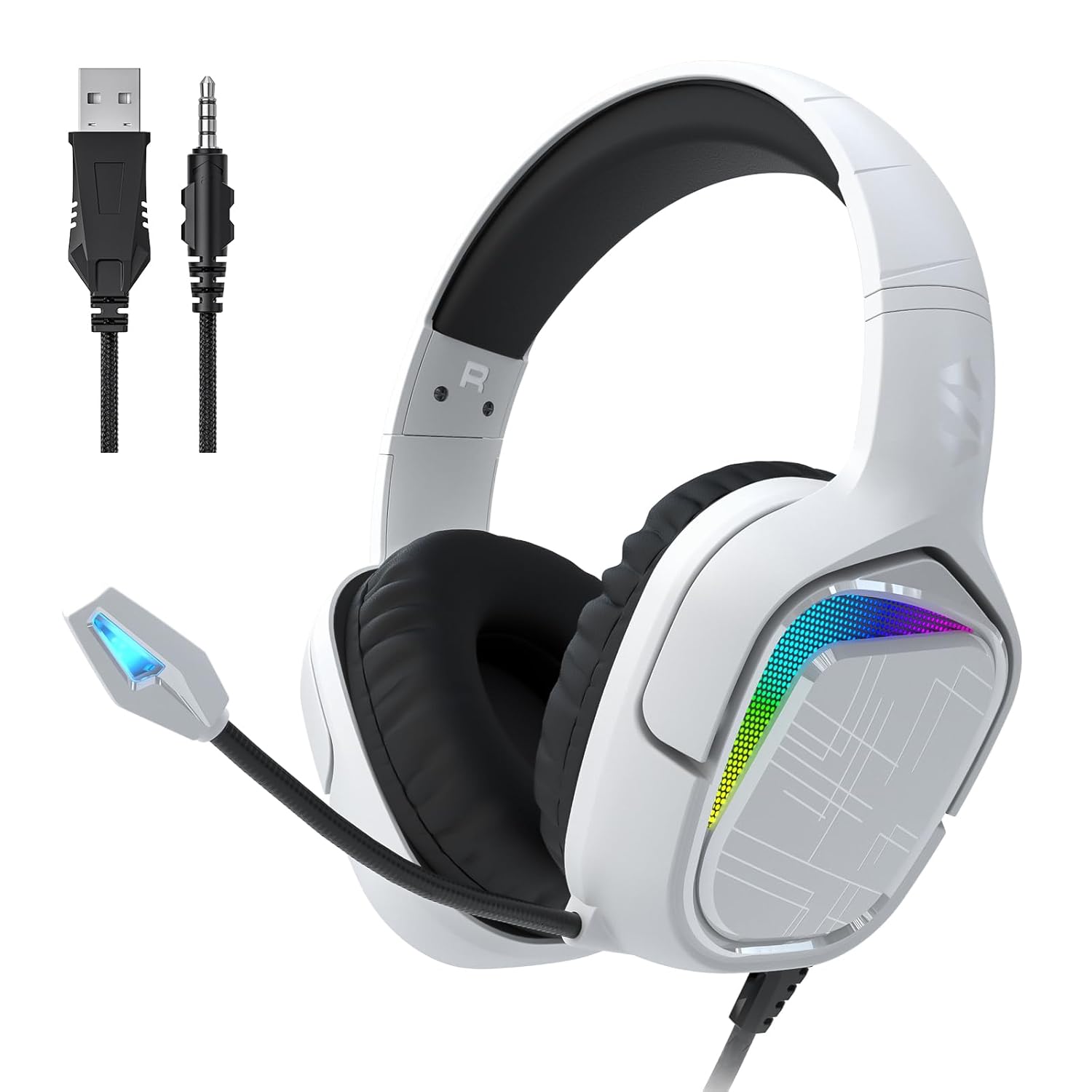 【3.5mm Multi-Platform Connectivity】: Enjoy a stunning gaming experience across PC, PS4, PS5, Switch, Xbox and Android Devices with the 3.5mm audio output or separate audio and mic ports (using the included adapter cable). The USB connector is only used to power the RGB lighting