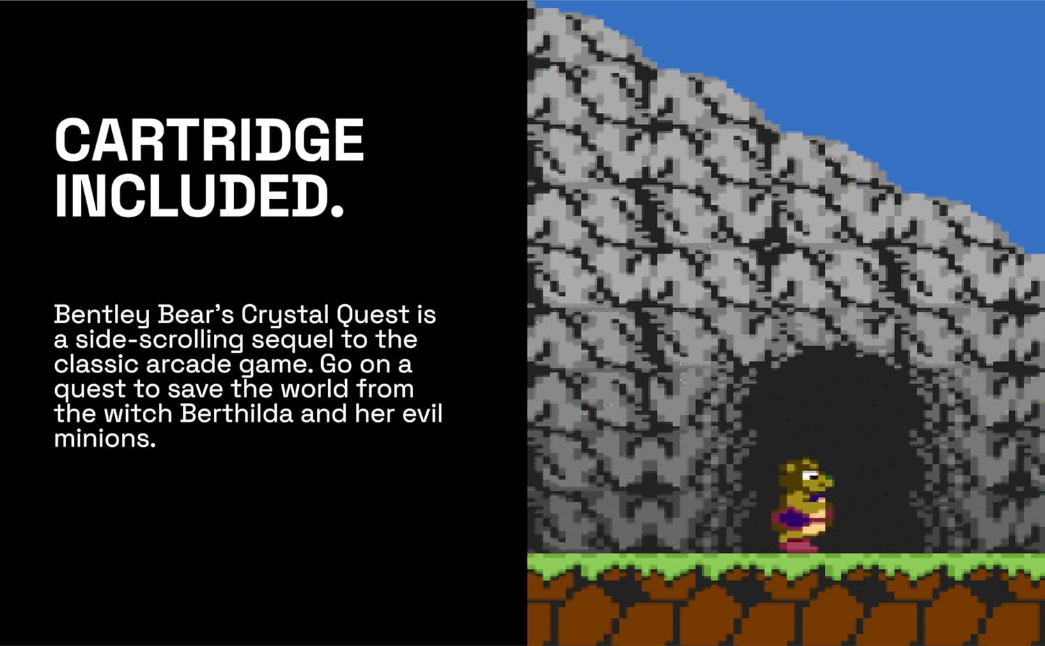 Includes Bentley Bear’s Crystal Quest Cartridge – In this brand-new sequel to Crystal Castles, you’ll find power-ups, hidden paths, a challenging variety of enemies…and one adorable bear. Everything a platforming fan could possibly want.