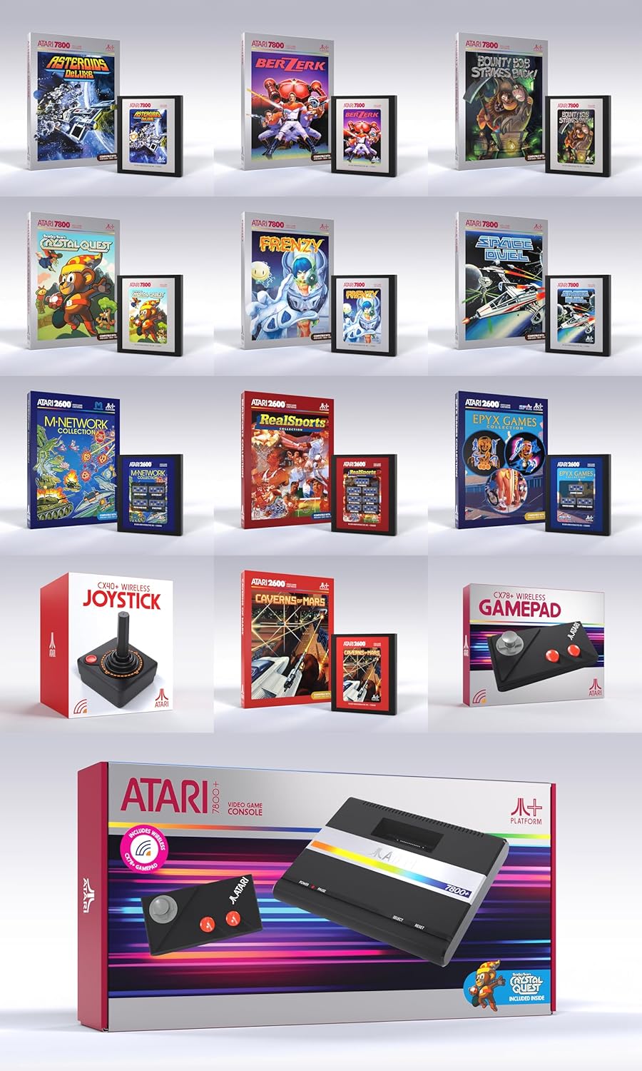GET YOUR PIXEL FIX LIKE IT’S 1986. The new Atari 7800+ joins the ranks of such timeless design icons as shoulder pads, crop tops, and aviator sunglasses! Inspired by the original ‘80s design, this scaled-down version fits today’s living rooms and connects easily to modern TVs via HDMI. It supports both 2600 and 7800 game cartridges and comes with the new Wireless CX78+ Gamepad, an untethered recreation of the radical controller Atari released with the 7800 in Europe in the ‘80s. Use its two-button gaming power to journey through Bentley Bear’s Crystal Quest, the brand-new cartridge sequel to Crystal Castles. Features: • Plays both Atari 2600 and 7800 game cartridges • Near-perfect compatibility with original and third-party Atari games • Easily connects to any screen via HDMI • Widescreen or 4:3 viewing options for all displays • Included cartridge Bentley Bear’s newest 7800 adventure; Bentley Bear’s Crystal Quest • USB-C charging cable (wall charging plug not included)