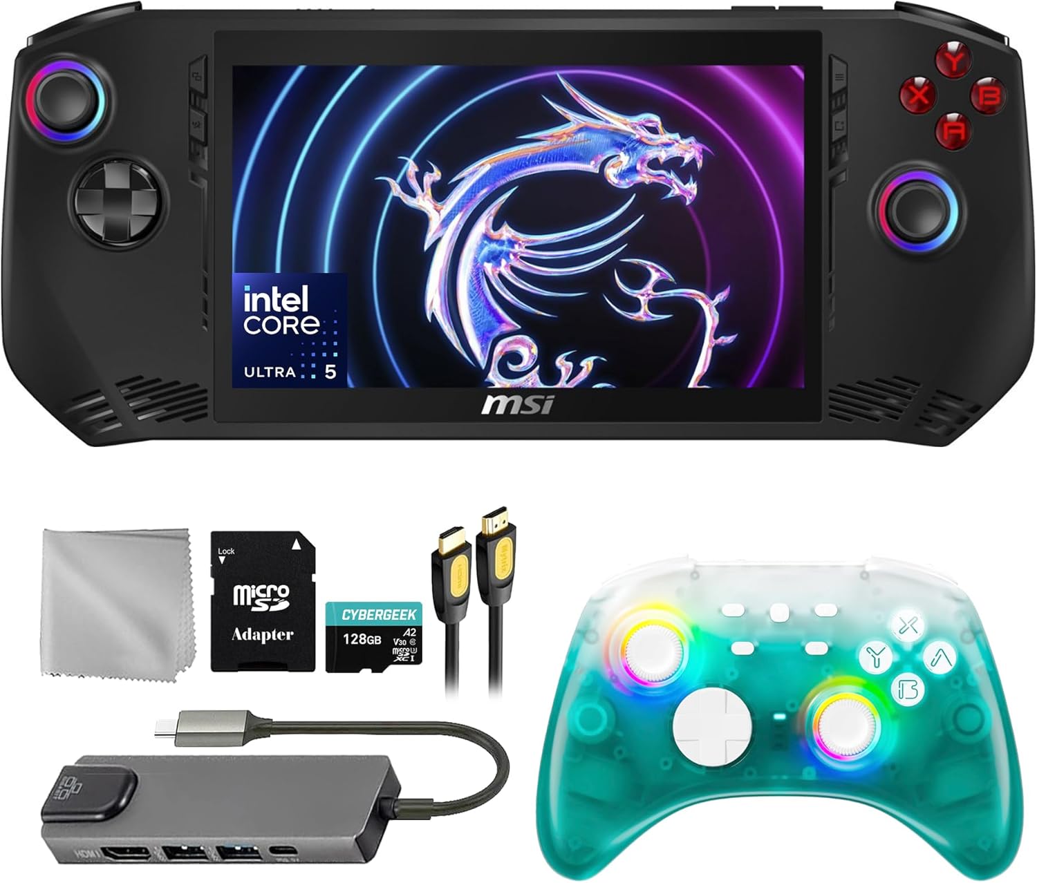 MSI Claw A1M 1TB PCIe Gen 4 SSD Gaming Handheld 7-inch Touchscreen 120Hz FHD 1080p Core Ultra 5 135H Processor integrated NPU for power-efficient AI acceleration, Gold Wireless Pro Controller, Hub, 128GB MicroSD Card, 5 Accessories: 6 in 1 Bundle