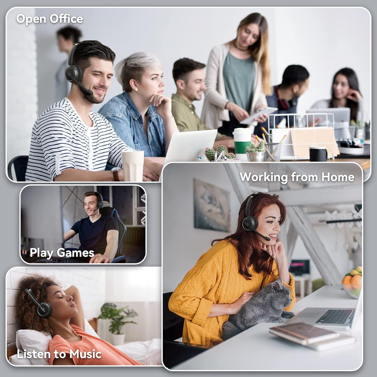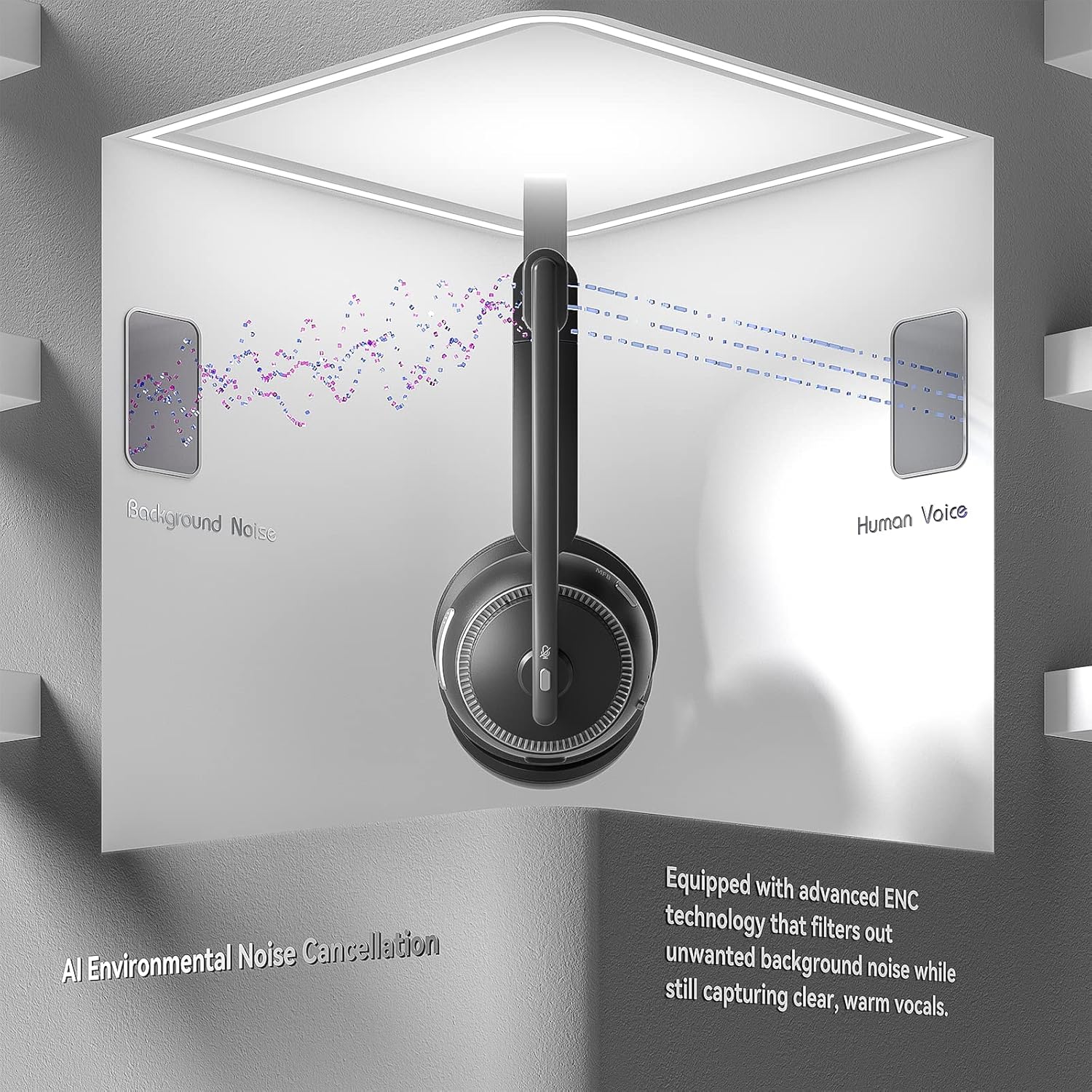 65H LONG BATTERY LIFE: Designed to provide you with uninterrupted communication for extended periods. This wireless headset with microphone for PC delivers 65 hours of work time or up to 40 hours of talk time — all on one charge. Even with just one weekly charge, the bluetooth headset ensures you have a full 8 hours of talk time each day for your work shift. Say goodbye to the hassle of frequently charging your wireless headset for computer and enjoy the freedom to stay connected for longer