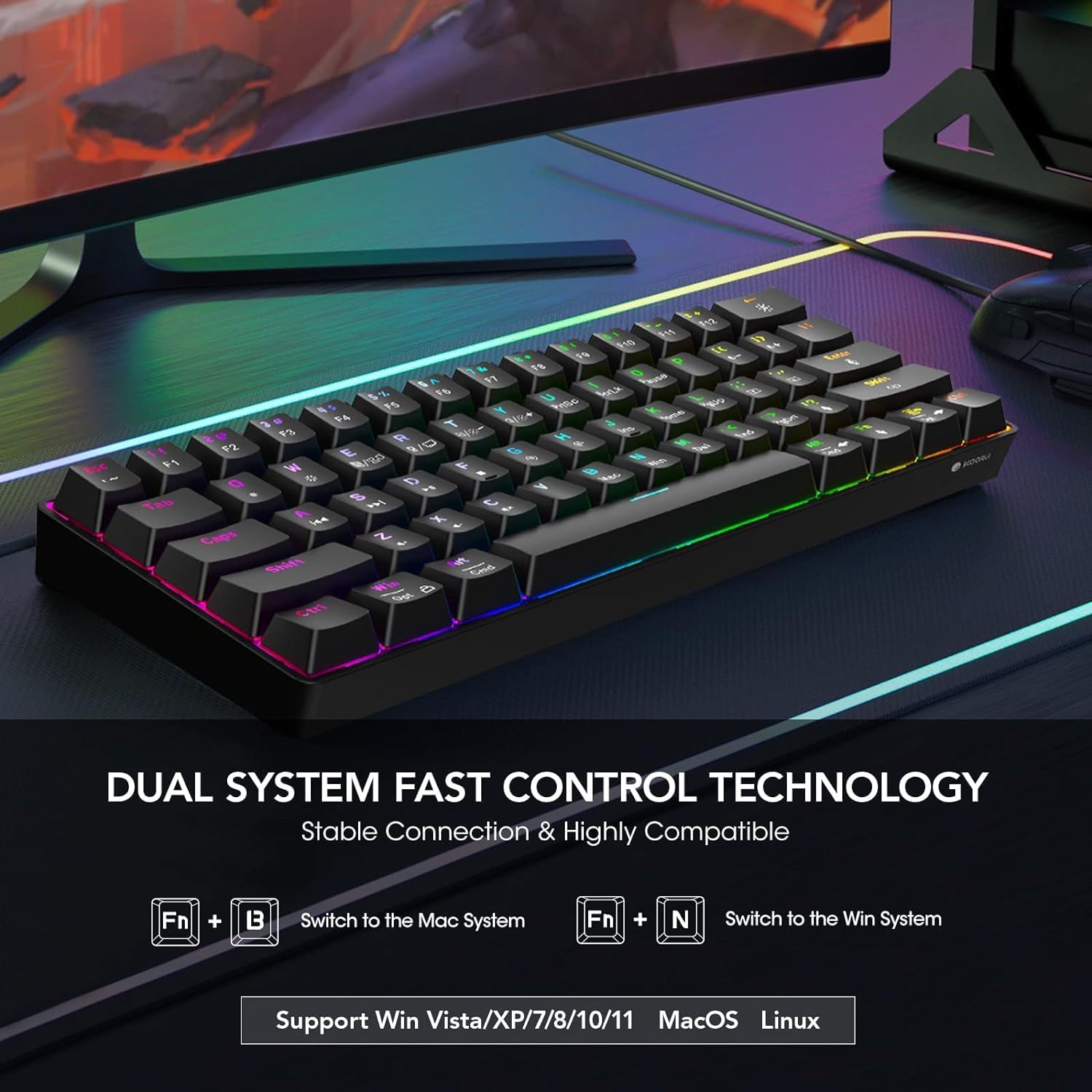 Hot-Swappable Switches: The 61 Keys mechanical keyboard comes with six extra switches (two each of red, brown, and blue) for you to try different switch types and enrich your typing experience. Additionally, the double-shot injection keycaps are fade-resistant and long-lasting.