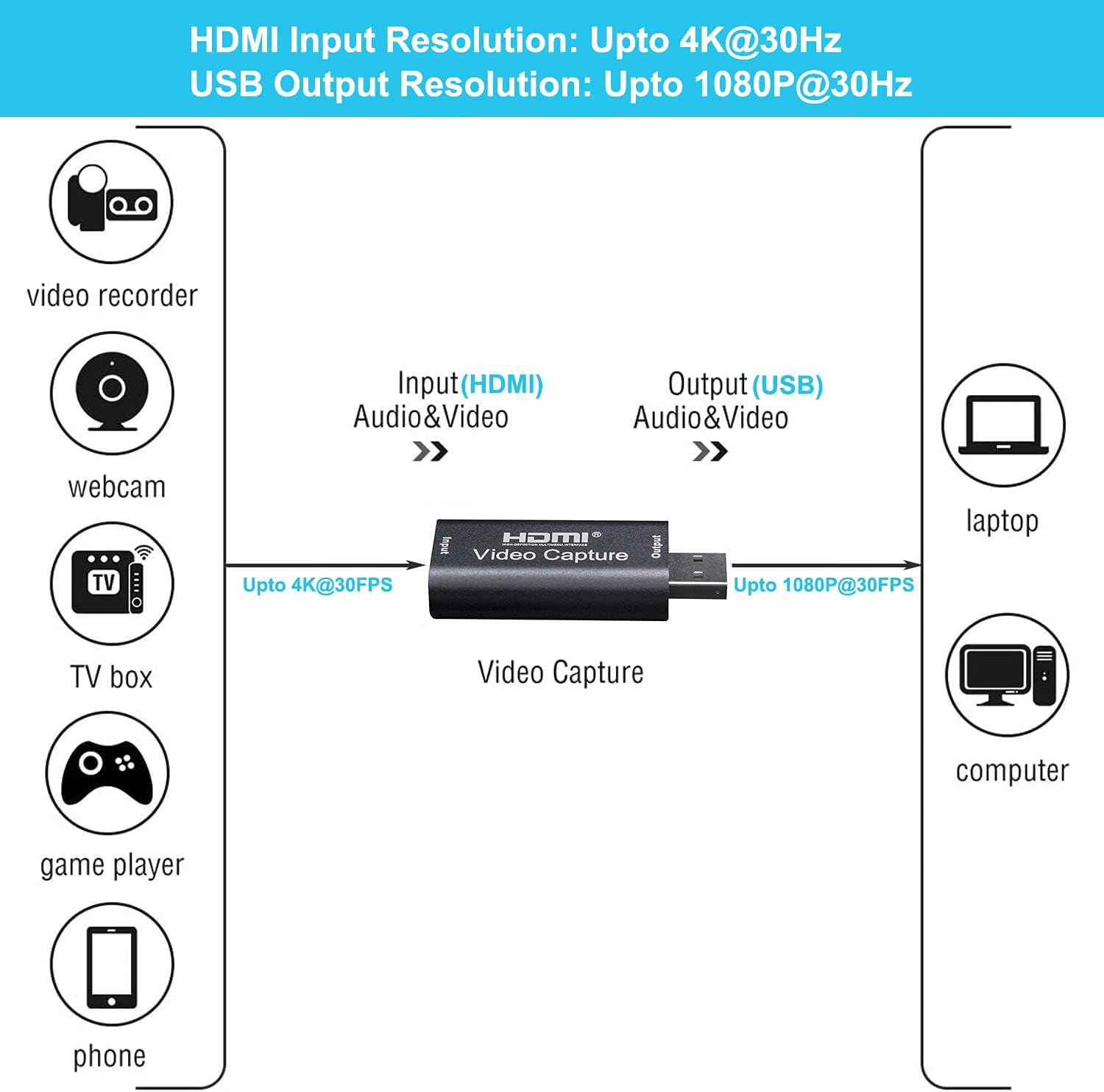 Plug and play- Hdmi video capture easily connect your DSLR, camcorder, or action Cam to your PC or Mac. Hdmi to usb video capture card is small, light and portable