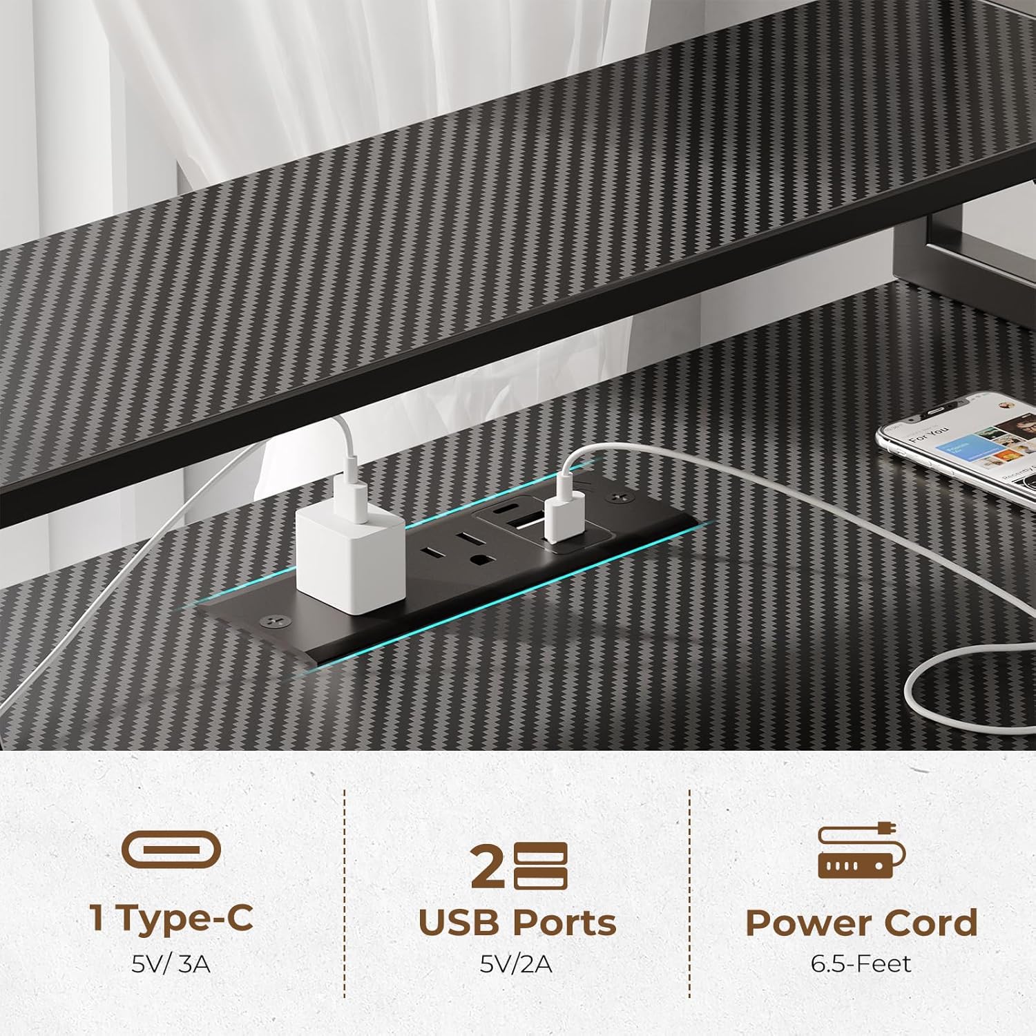 Versatile Charging Station: The gaming desk is equipped with 2 AC outlets, 2 USB ports, and a built-in Type-C port, making it easy to charge your monitors, office equipment, or gaming devices