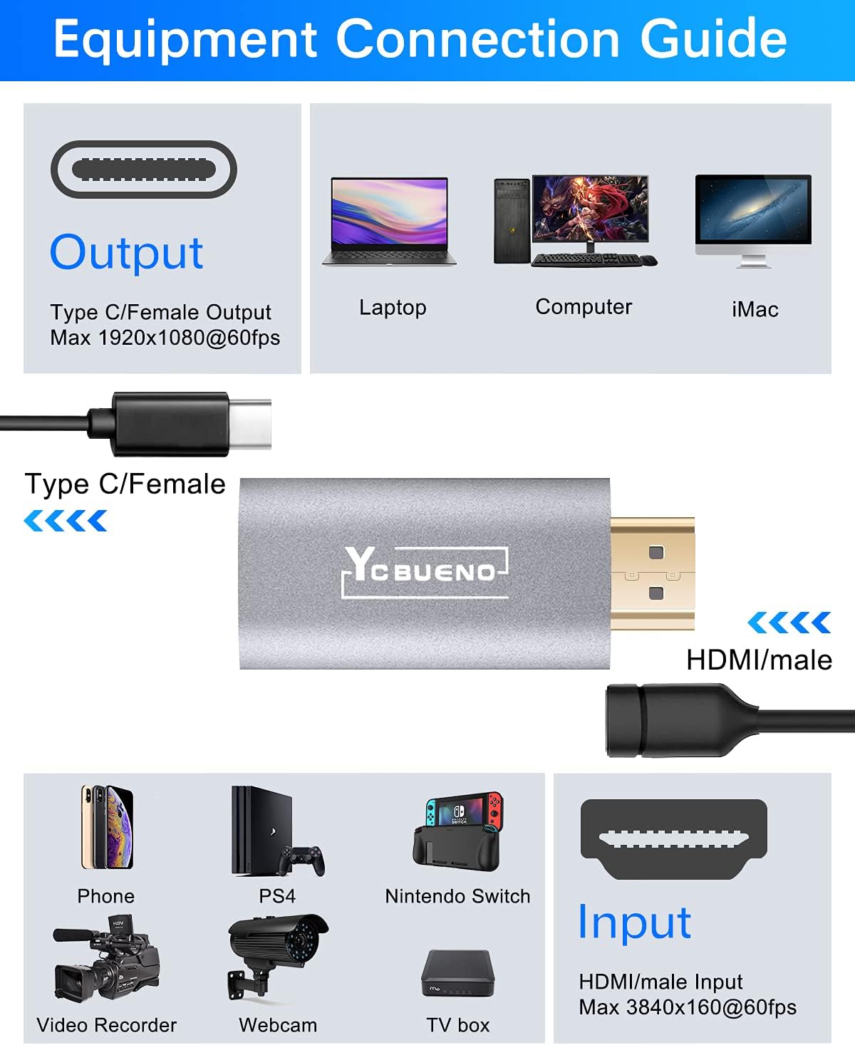 【4K60@Hz Video Capture Card】The Type-C audio video capture cards is up to 3840×2160@60Hz high definition input, output max resolution 1920×1080@60Hz, support 1080P 60fps high quality recording and live steaming with no delay. you can enjoy much clear video for your recording, live streaming, broadcasting live.