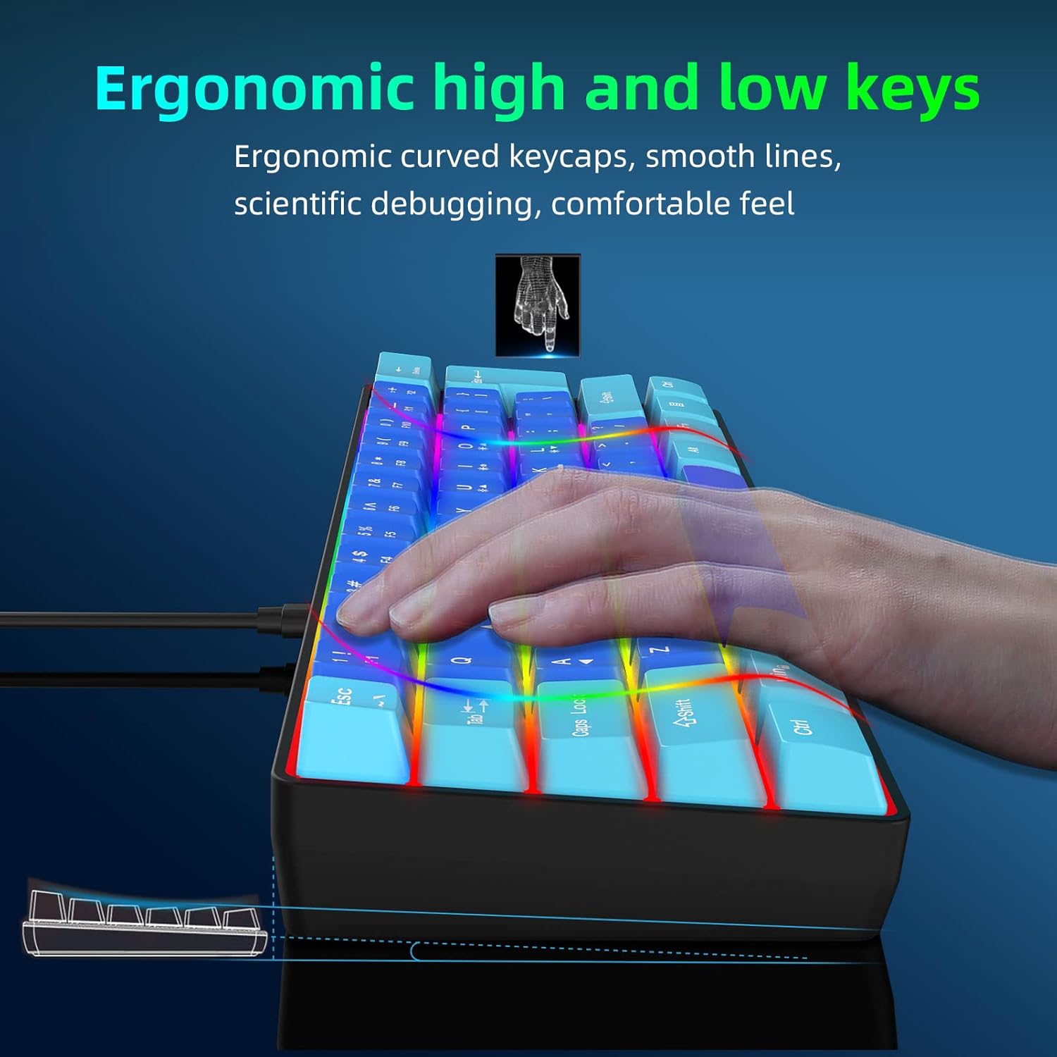 【Ergonomic Design and Mechanical Feel】The 60 gaming keyboard key height is designed according to ergonomics, and it is not easy to fatigue after long-term use. Using advanced imitation mechanical technology, one of the attractive features is the mechanical feeling.
