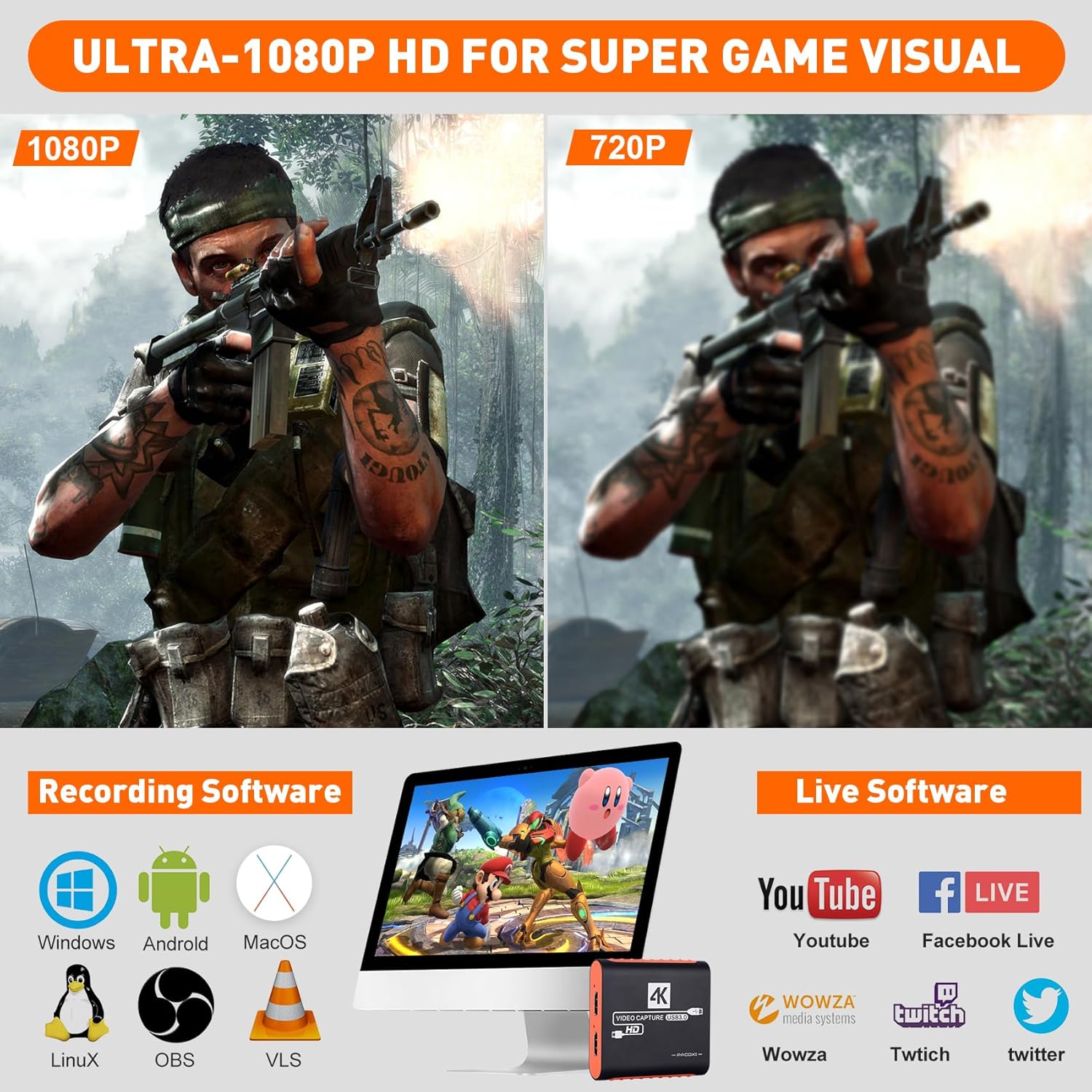 【Real USB3.0 YUY2 1080P 60FPS Capture Card】Using real USB3.0 protocol chipset,it is a real USB3.0 HDMI Capture Card, it can support capture YUY2 1080P 60FPS resolution, it s very suitable to use it for game live streaming and recording.