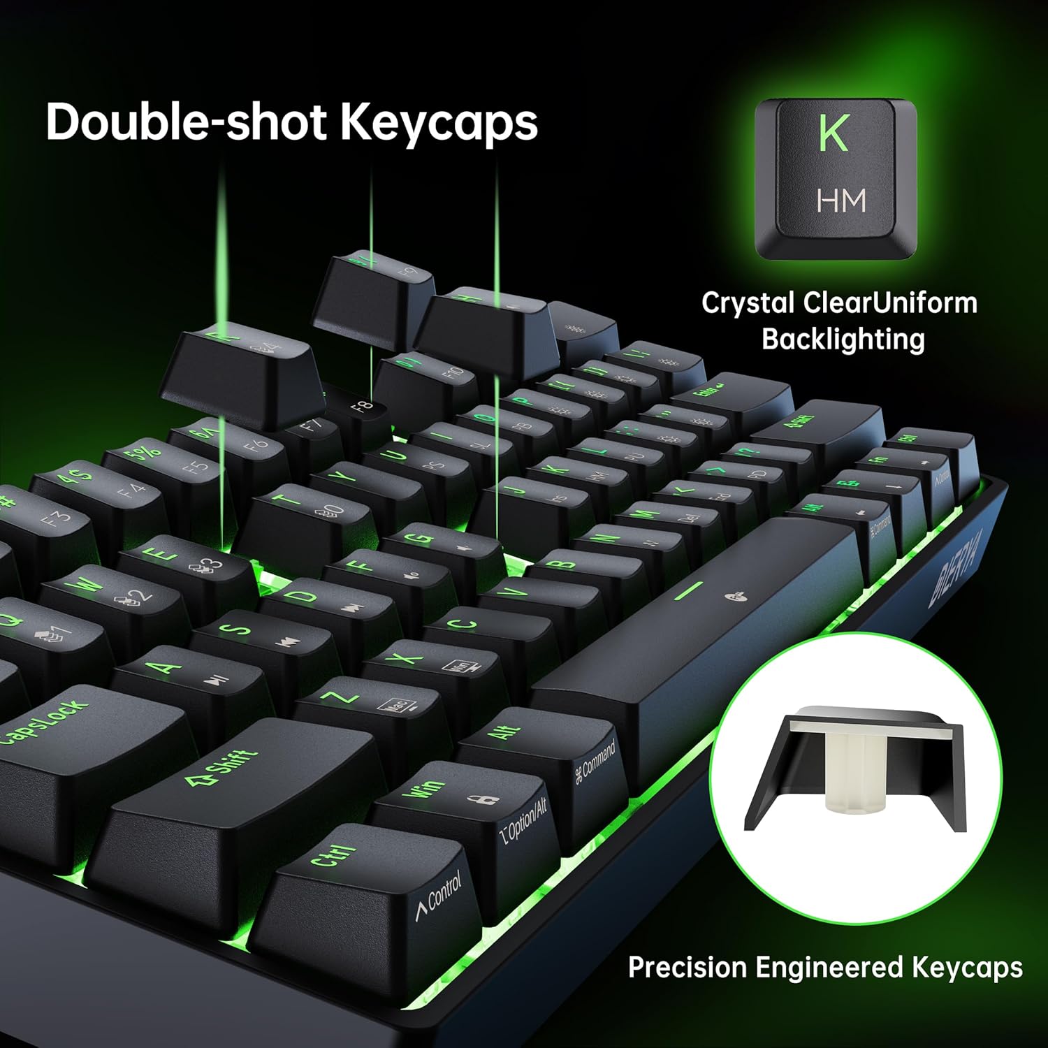 Double-shot Keycaps: The DK61SE keycap characters are made of transparent material, which is more durable and resistant to fading over time compared to ordinary printed characters. The backlight can easily shine through the transparent layer, making it easy to see the keycap characters even in low-light conditions.
