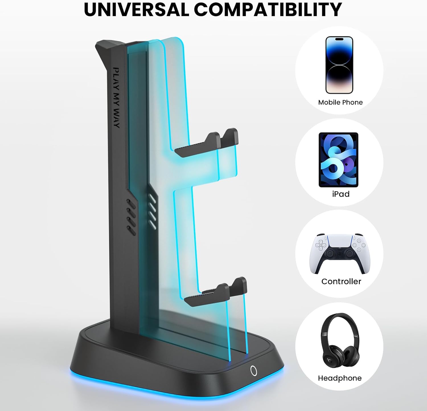 💡Multi-Functional Display: Not just a holder, this device serves as a functional display stand for showcasing your controllers. Keep them organized, charged, and ready for action while adding a cool aesthetic to your gaming space.