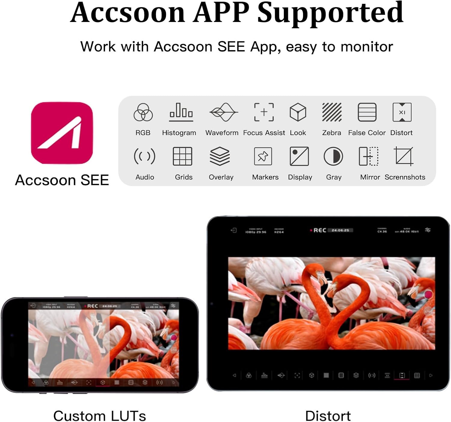 APP Supported: With the Accsoon See APP , which can change the video from the camera into the bigger monitor(iPhone/iPad). Easy to monitor the video process, you can reach your audiences from anywhere using RTMP to popular video streaming sites, including Facebook Live, Twitch, and YouTube.